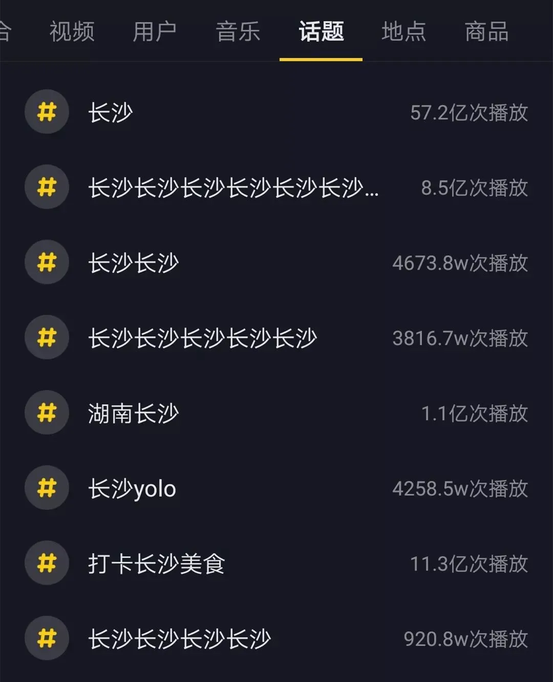 其中,#长沙#这个话题的播放量