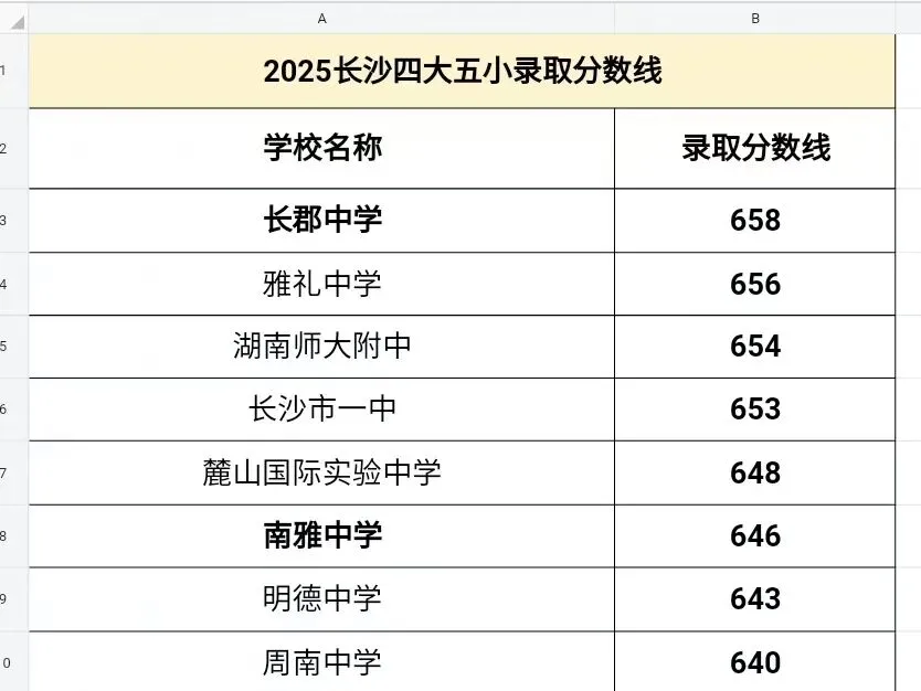 其中2025年长沙四大名校的录取分数线最低653分(满分700),意味着要做到至少93%以上的正确率才有可能进入四大,学习能力➕抗压能力是每一位四大名校的学生必备的!