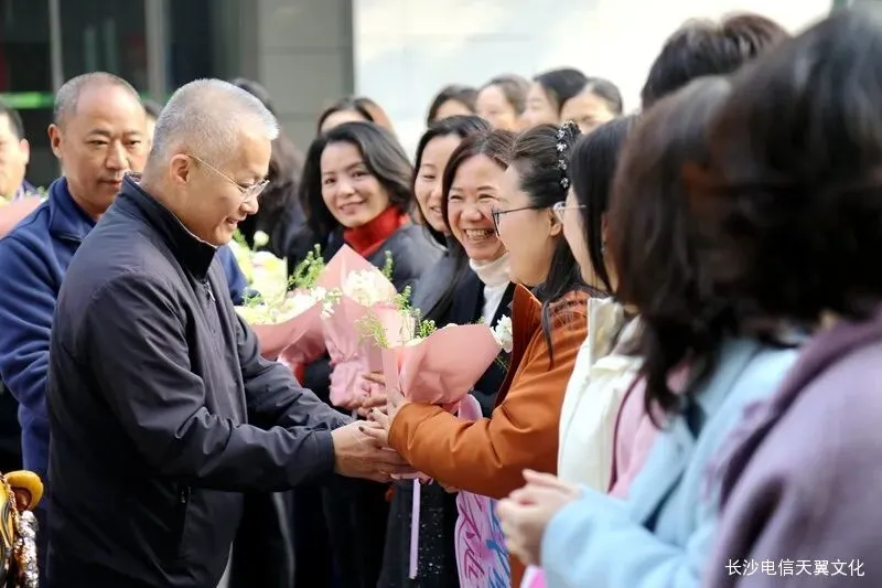 党委书记、总经理符传剑向女同事献花