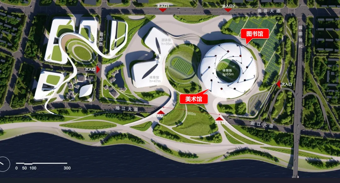 约6.5万座的主体育场刚好就融合了图书馆、美术馆,合计面积约5万平。