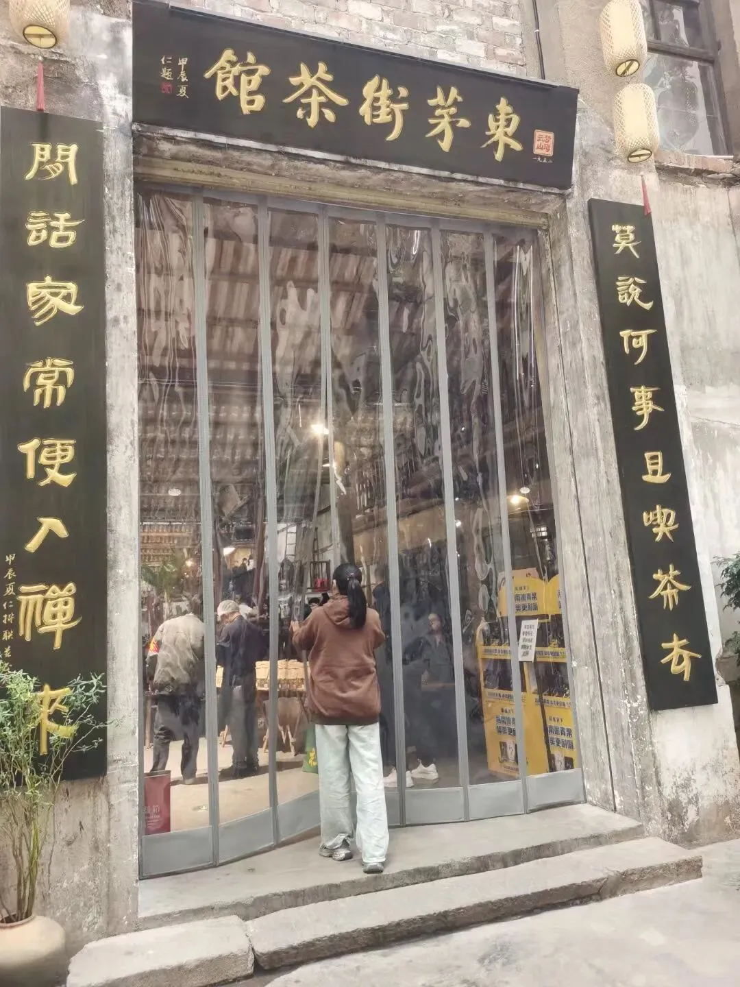 对于念旧的长辈来说,最好的聚会地点莫过于充满老长沙韵味的地方。在东茅街茶馆,时光仿佛慢了下来。这里由老厂房改造,保留着木梁、水泥地和斑驳墙体,配上“莫说何事且喫茶去”的对联,瞬间把人拉回上世纪的长沙街巷 。