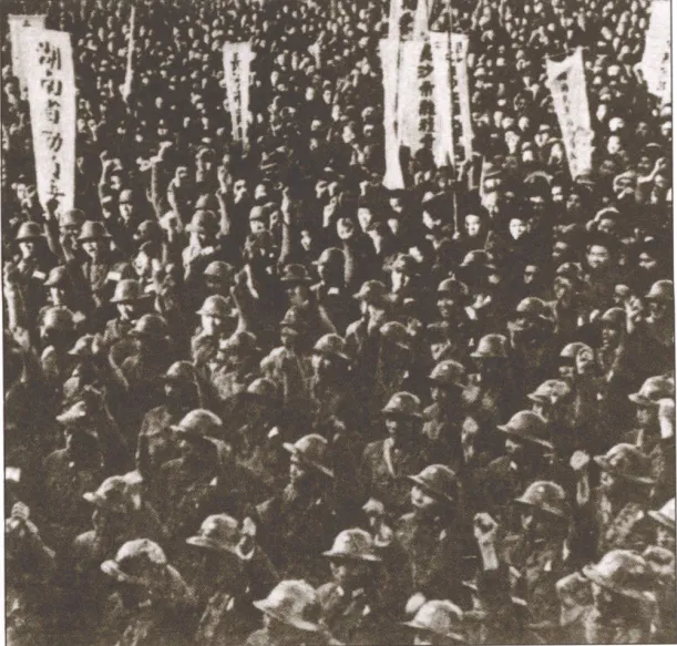 中国军民庆祝第三次长沙会战取得胜利