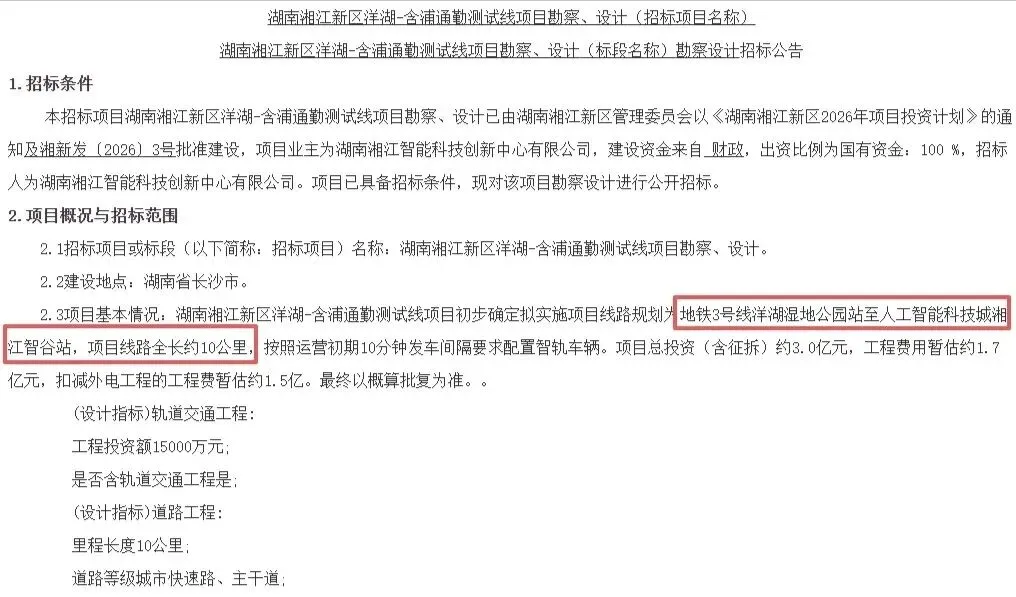 起点是洋湖湿地公园(无缝接驳地铁3号线),终点是湘江智谷人工智能科技城。