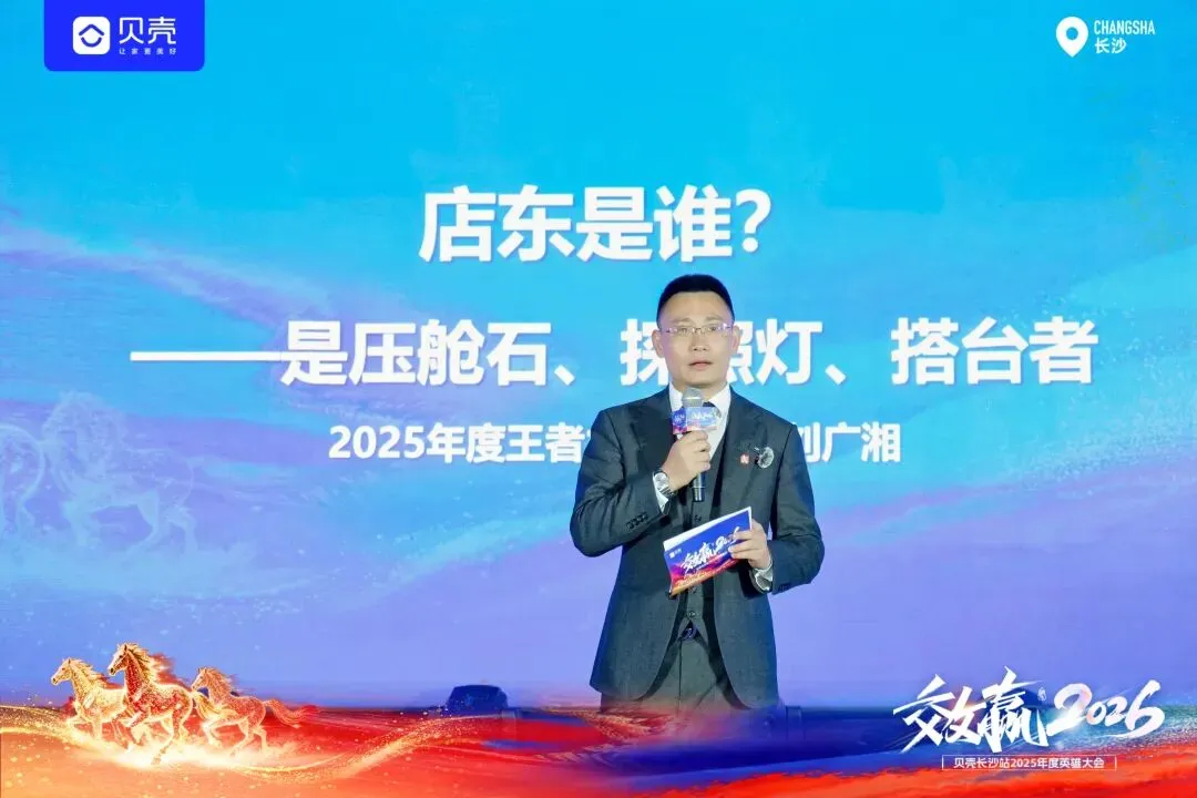 这份 “跟上、借力、成事” 的智慧,不仅是刘广湘个人的成功密码,更是贝壳人在 “效赢 2026” 道路上的生动实践 —— 以效率为矛,以协同为盾,在复杂的市场中开辟出一条清晰的增长之路。从 “单量王・经纪人”“单量王・门店” 到 “金质商圈”,从 “王者精兵” 到 “王者之师 ”,每一个奖项都代表着行业顶尖水准。一批优秀家人站上顶峰,他们是贝壳长沙的中坚力量,更是全体家人的奋斗标杆。