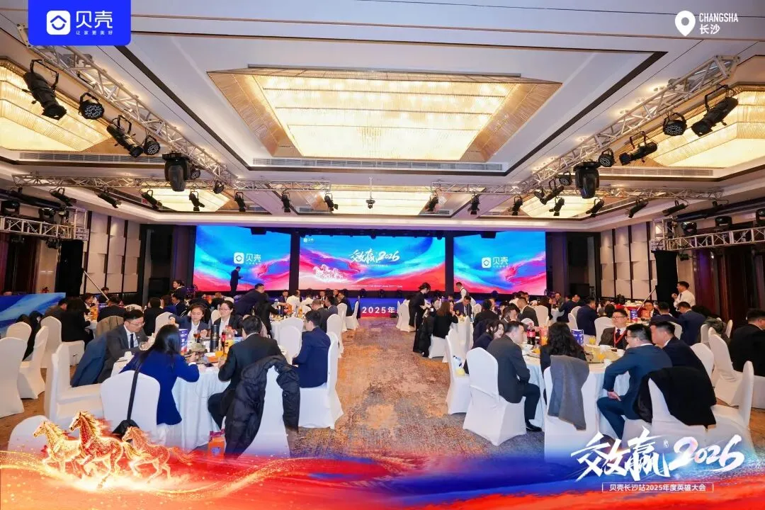 春风浩荡,战马嘶鸣。2026 年 3 月 5 日,以”效赢 2026“为主题的贝壳长沙站 2025 年度英雄大会,在一缦酒店二楼国际宴会厅盛大启幕!