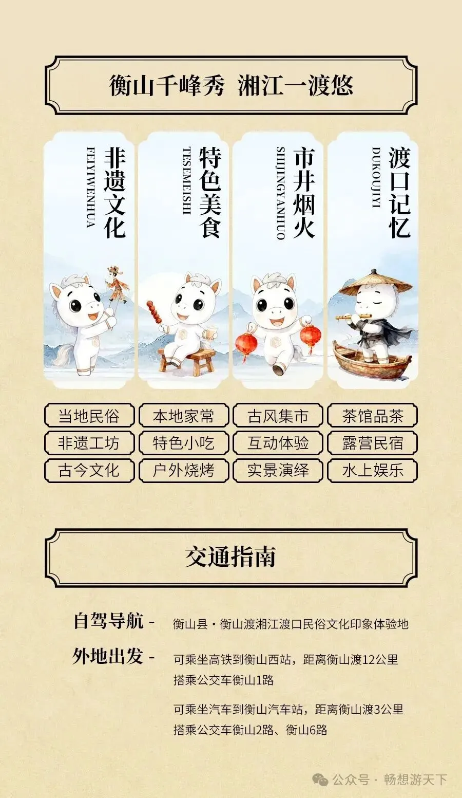 出发地-衡山渡—渲州古镇-游船-1944景区—南岳里庙里文化美食街-返程亮点:深度探索每个景点