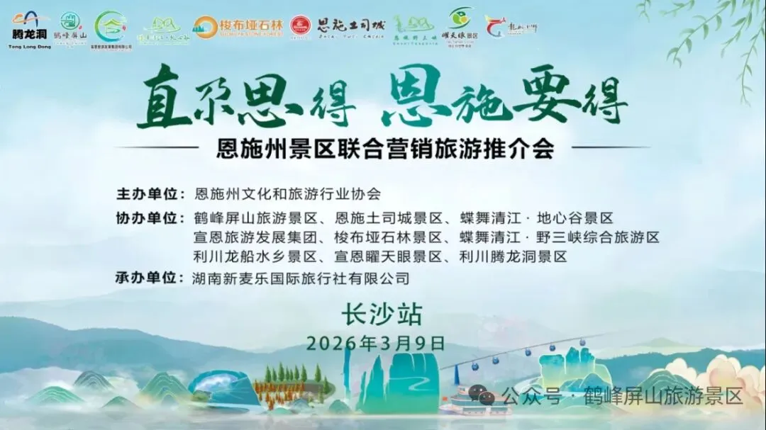 3月10日,由恩施州文化和旅游行业协会主办的 “直尕思得 恩施要得”2026年恩施州景区联合营销旅游推介会 首站在湖南长沙隆重启幕。这不仅是恩施州全域旅游在2026年的首次集体亮相,更是恩施建设世界级旅游目的地征途中,迈出的坚实一步。