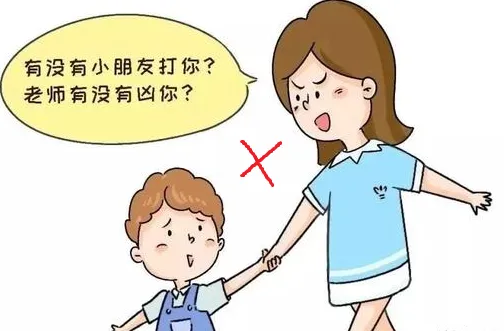 有的家长看着孩子哭泣很心疼。接园时,多问正面导向的问题,千万别接到孩子就急着问:今天哭了吗?有没有吃饱?有没有人欺负你?老师对你好不好?有没有和小朋友闹别扭? 可以关心,但别把孩子摆在“受害者”的位置上,摆在幼儿园、老师、其他小朋友的对立面,这样孩子会对幼儿园产生负面的情绪,会抗拒上幼儿园。