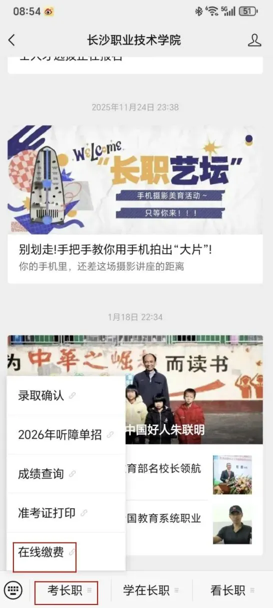1、考生可通过微信扫一扫,扫描下列二维码关注“长沙职业技术学院”公众号;