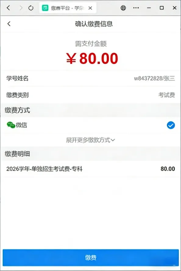 7、在支付页面请确认支付信息,选择支付方式,点击非税缴费,再点击立即支付;