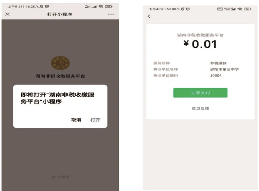 8、点击立即支付后会转到“湖南非税收缴服务平台”小程序,完成支付即可;
