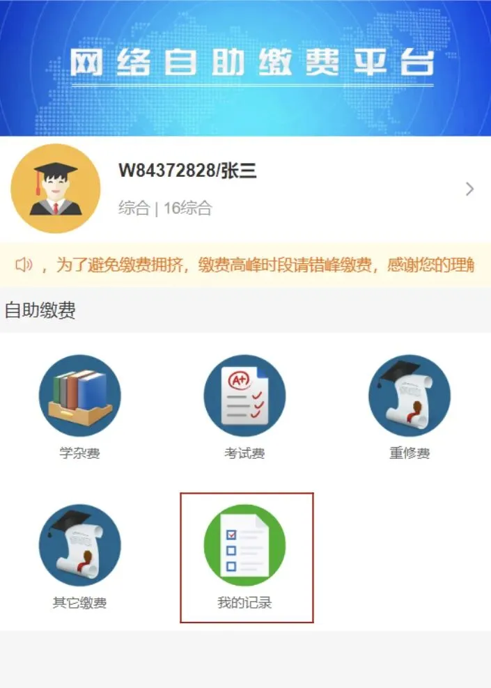 9、考生可在通过点击“我的记录”查看缴费详细情况。