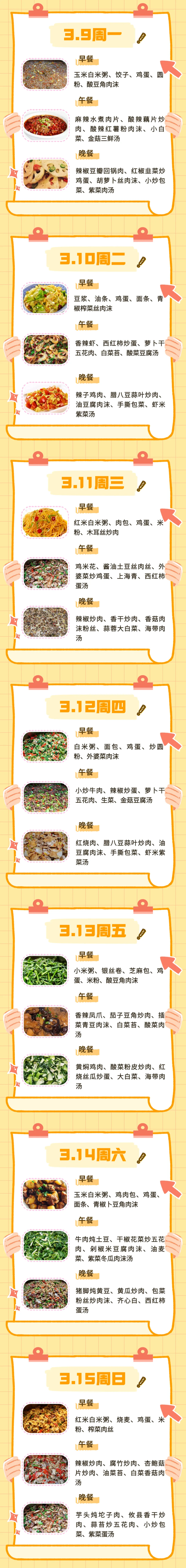 长沙市麓谷高级中学复读部一周食谱详情|匠心膳食,守护成长(3.09-3.15)