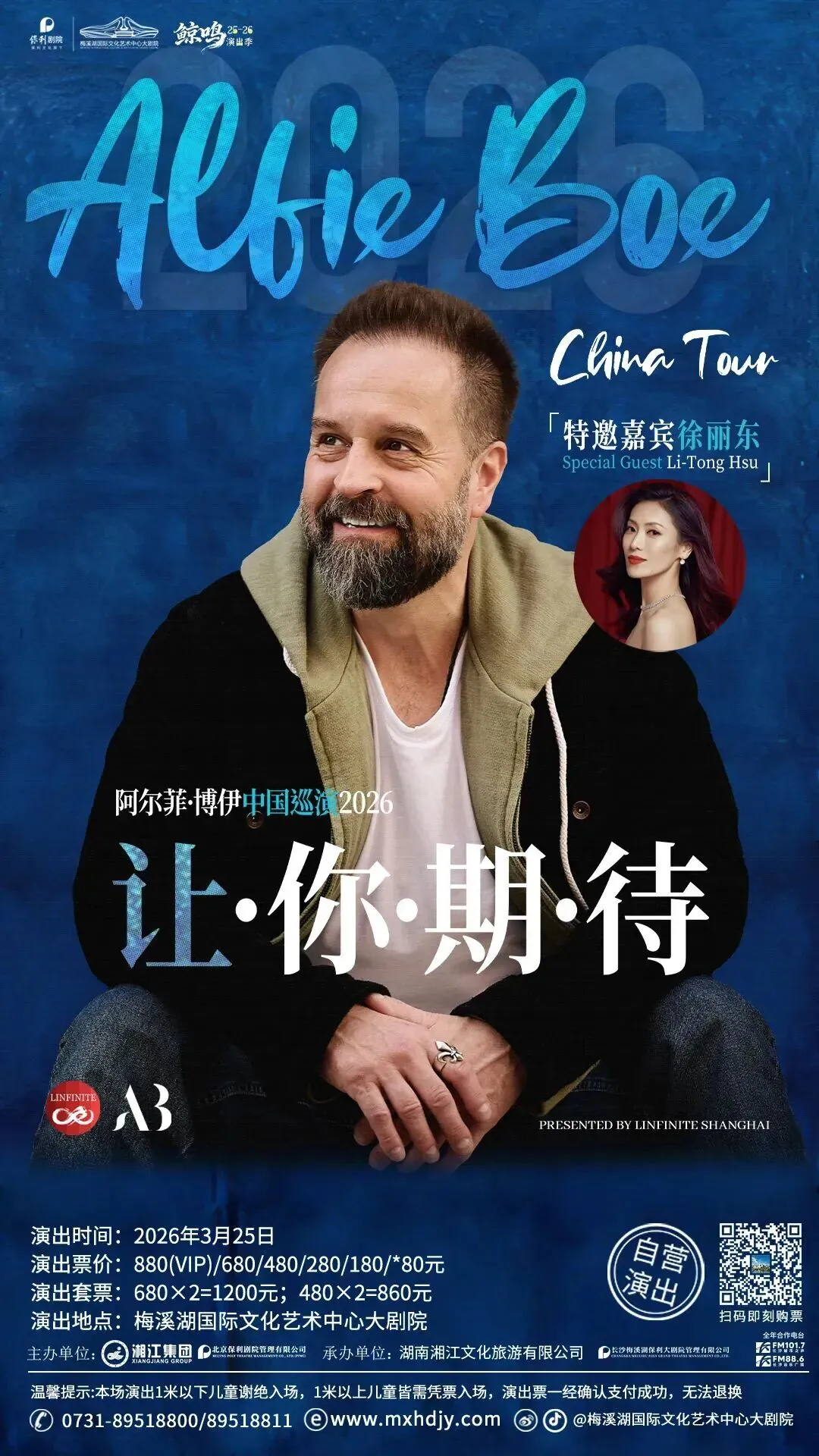 此次音乐会,阿尔菲·博伊将携手音乐剧演员徐丽东同台献演。徐丽东活跃于国际舞台,拥有深厚的声乐功底与舞台表现力,曾在荷兰、英国、瑞典、中国等多个国家参与国际版经典音乐剧的演出,包括《猫》《青蛙》《长靴皇后》《吉屋出租》《Here Lies Love》《西贡小姐》等。