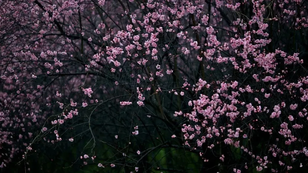 很多人偏爱晴天赏花,阳光明媚,花开明艳,可于我而言,雨中的梅花,才藏着最独特的韵味。没有喧嚣的人潮,没有刺眼的阳光,丝丝细雨轻柔洒落,为整片梅林蒙上了一层朦胧的薄纱,让平日里的红梅,多了几分温婉与柔情,宛如一幅徐徐展开的中式水墨画,淡雅又治愈。