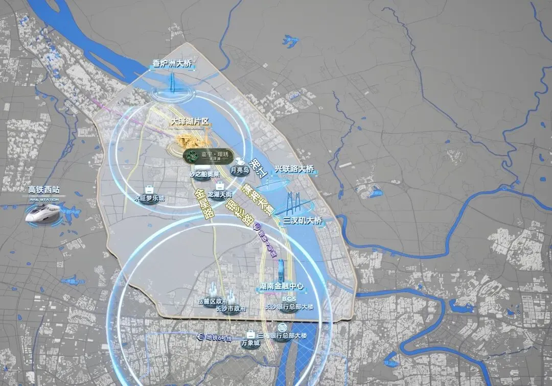 从区域定位来看,大泽湖是全球研发中心城市三基地之一,整体方向是“湘江未来城”,属于省、市、区多重资源加持的板块。