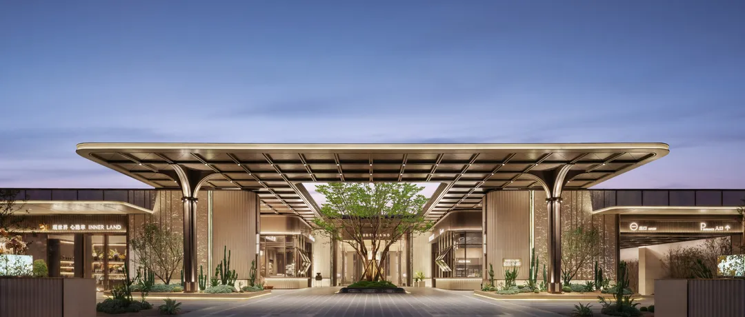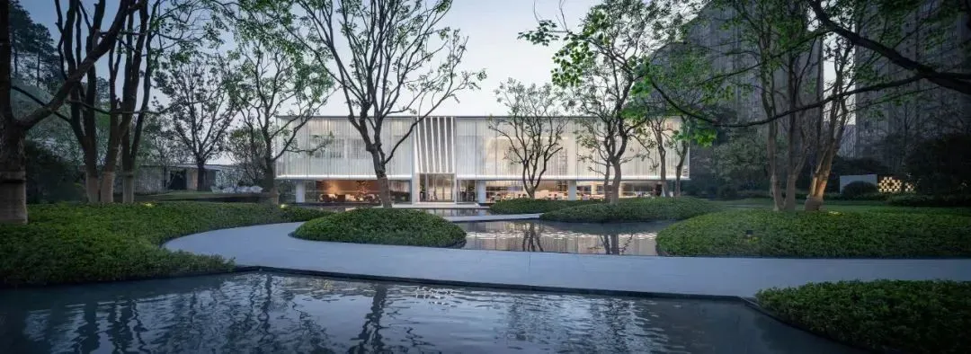 规划有超2万方的自然景观空间、设计中央车站,入口处打造了度假式酒店门庭,尺度超69米,园林首创下沉式悬浮庭院,配置20米悬挑水景+8.4米玻璃悬浮亭,自建2100㎡会所。