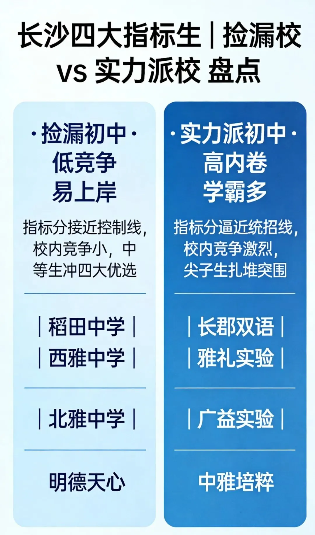 温馨提示:本文数据基于 2025 年官方公开信息整理,2026 年政策可能微调,建议持续关注长沙市教育局最新通知,升学规划需结合孩子实际情况综合判断~你家孩子目标是哪所四大名校?正在纠结哪所初中的指标生机会?欢迎在评论区留言,一起交流升学经验!