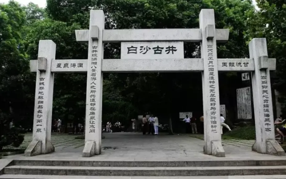 始建于明代,源于仙鹤“白沙姑娘”的美丽传说。原只有方井一口,现为四口,井水清香甘美、长饮不竭。井水为旧时长沙市民的主要饮用水源之一,明清时期更是将其具有的井文化、水文化和茶文化融为一体,道出了不可言传、只能意会的意境。在一代伟人毛泽东《水调歌头·游泳》所写里的“才饮长沙水,又食武昌鱼”,其中“长沙水”就是特指白沙井水。