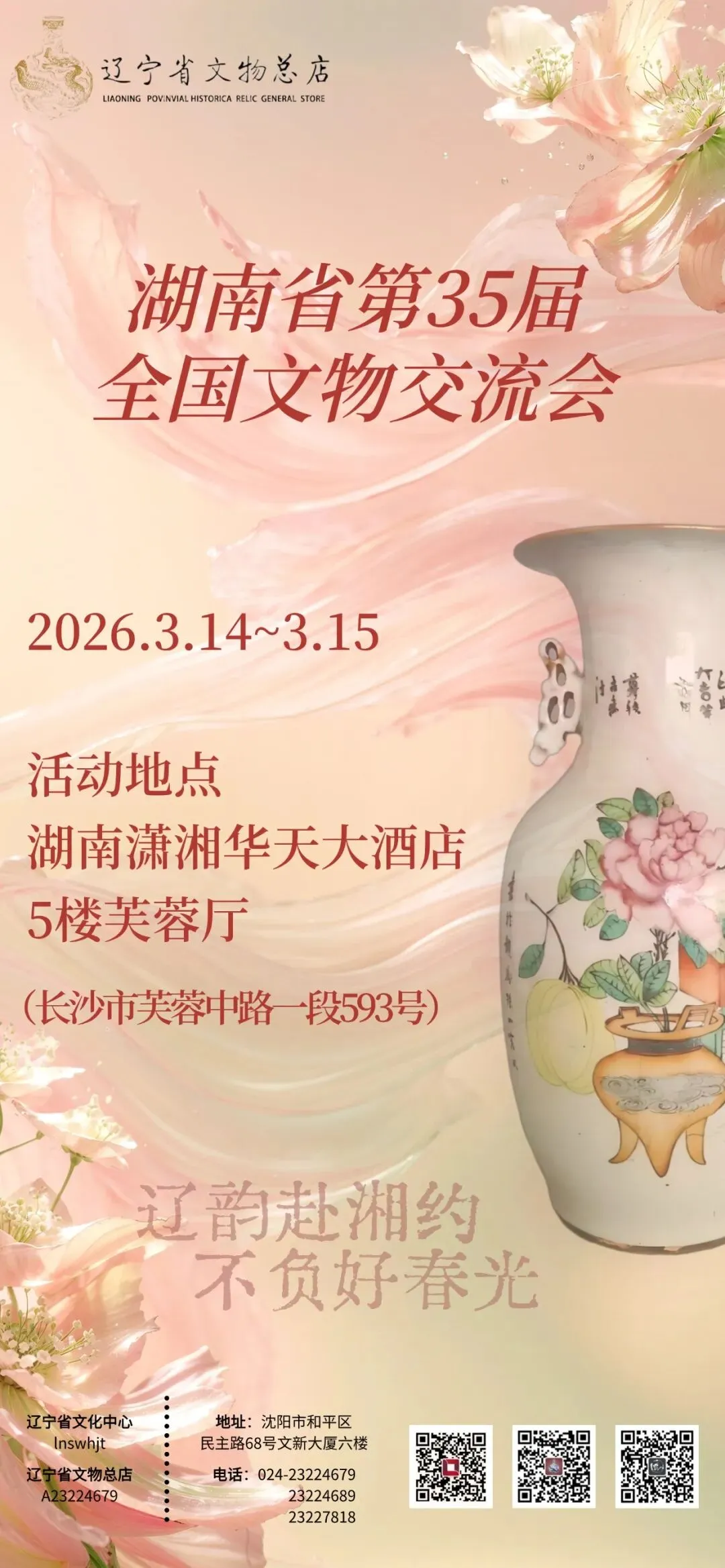 在这生机盎然的三月,辽宁省文物总店2026年首场文物艺术品交流活动将亮相第35届湖南文物交流会,进一步促进南北文化交流,让关东大地的厚重历史与湖湘地域的灵秀文脉在此交融绽放。