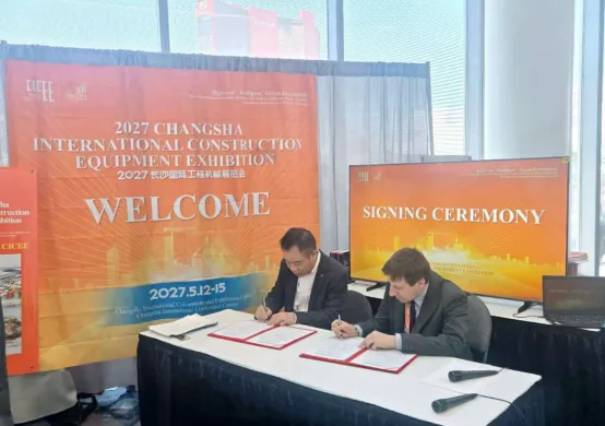 推介会现场还举行了集中签约仪式,长沙国际工程机械展览会组委会分别与国际智能建造学会(美国)、智利鸿展公司、印度NBM传媒集团、韩国起重机协会、意大利V22传媒集团等国际机构和媒体签订合作意向。合作内容涵盖全球专业观众组织、论坛活动推广、品牌传播及海外企业参展代理等多个方面,标志着CICEE 2027的国际合作网络进一步织密,全球影响力持续扩大。此次签约将为展会的国际化运营注入新动能,推动全球工程机械产业链的深度融合与协同发展。长沙工程机械行业协会与国际智能建造学会同步签订了战略合作协议。