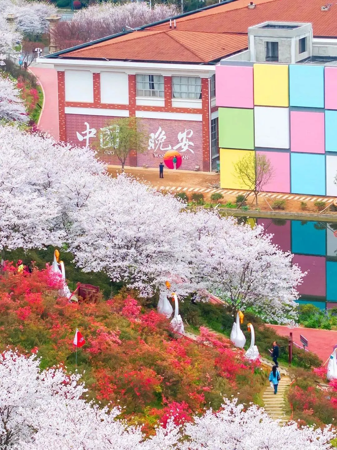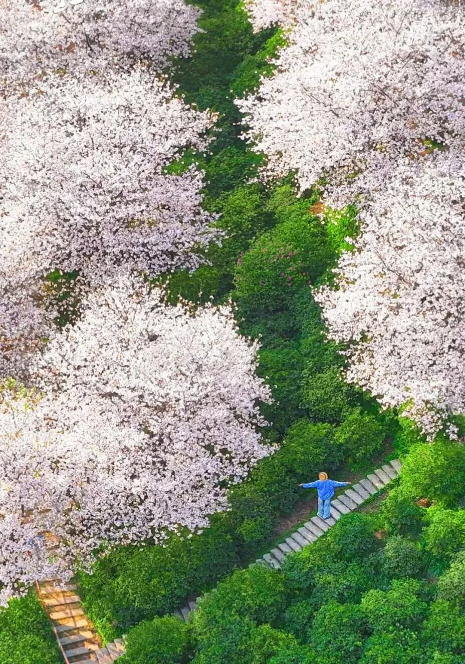 杜鹃广场:名字叫“杜鹃”,春天却是樱花的绝对主场。穿行在粉白花海的蜿蜒小径,像掉进了棉花糖做的梦里。