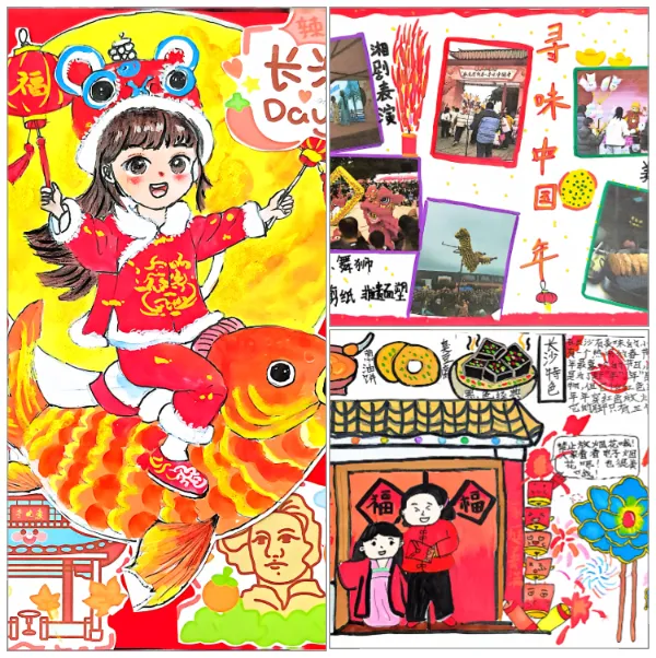 开展“文创小设计师”主题活动。以春节、元宵节传统节日为契机,少先队员们围绕“长沙县元素+传统节日”进行文创作品设计,内容涵盖节日装饰、文创产品、民俗插画等。