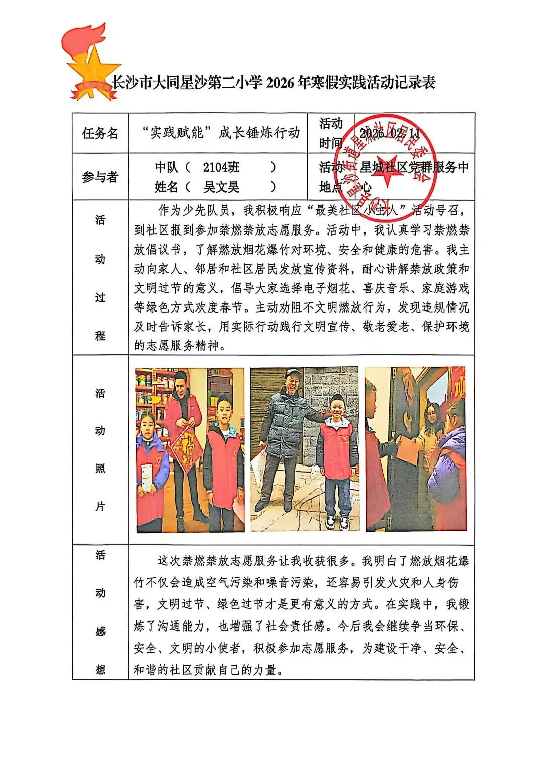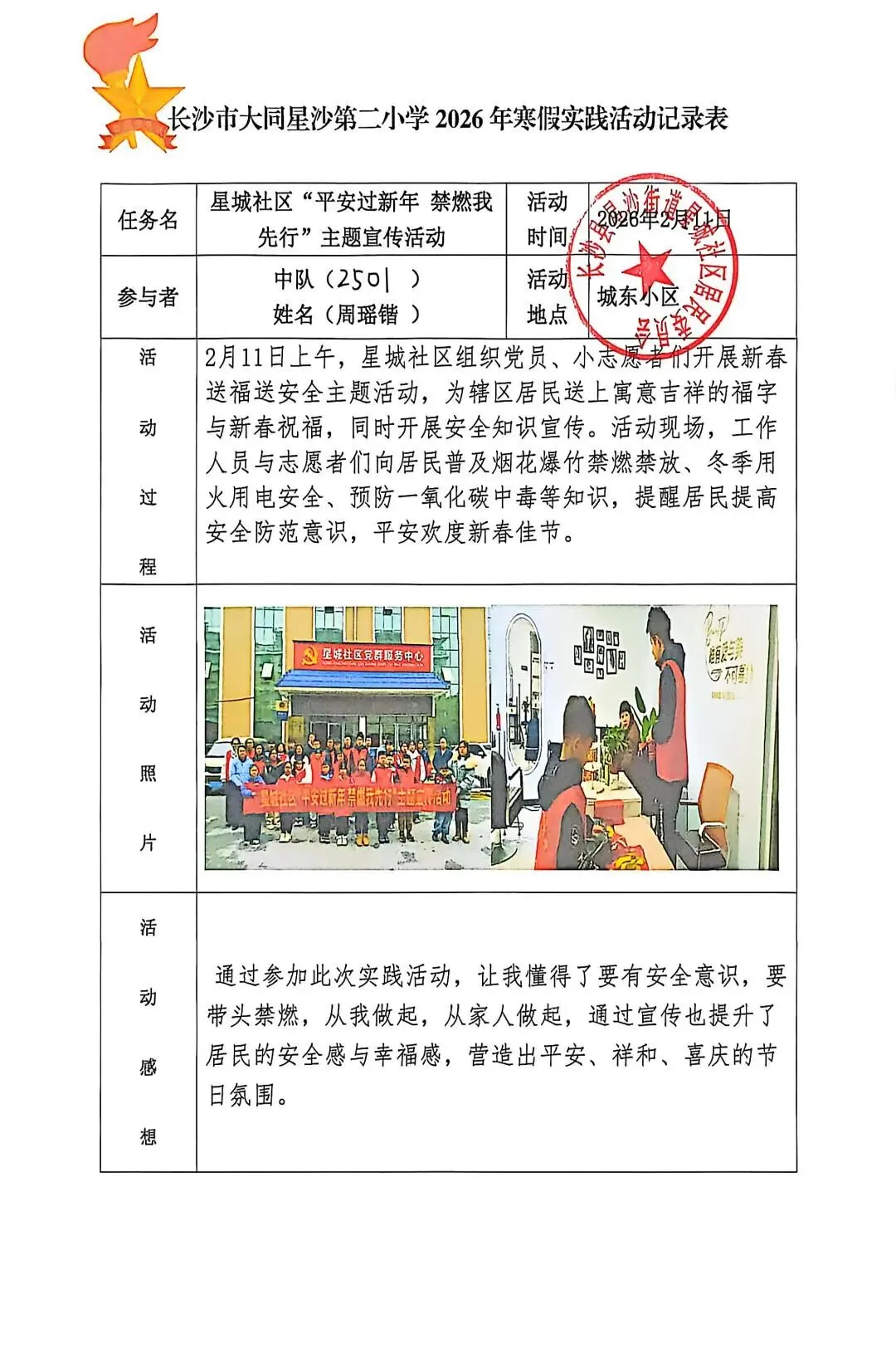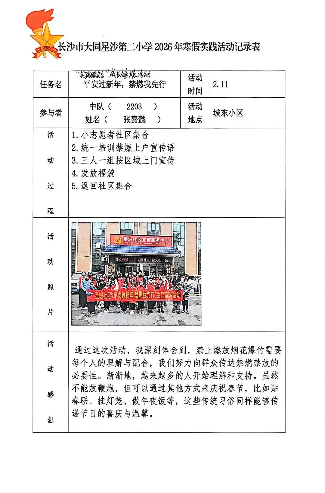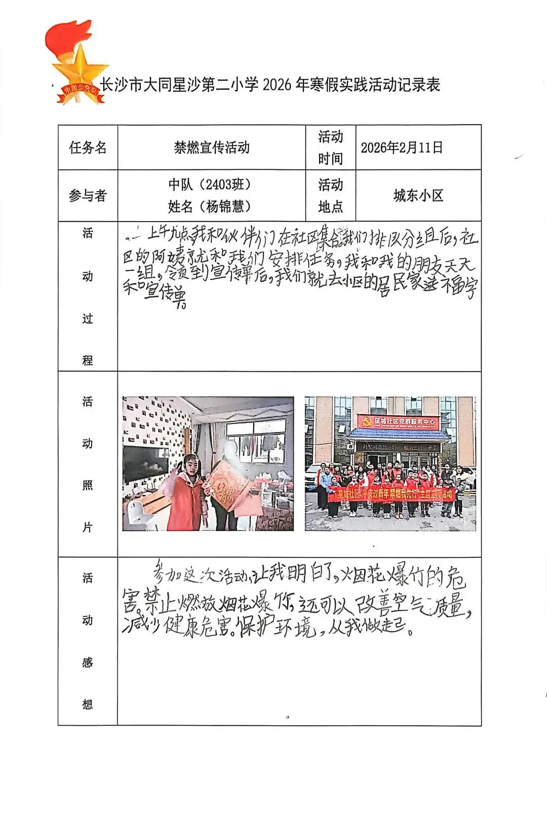 开展“最美社区小主人”活动。少先队员们向社区报到,参与环境清扫、敬老爱老、文明宣传、禁止燃放烟花爆竹宣传等志愿服务,以点滴行动感悟付出价值,在实践中收获成长与喜悦。