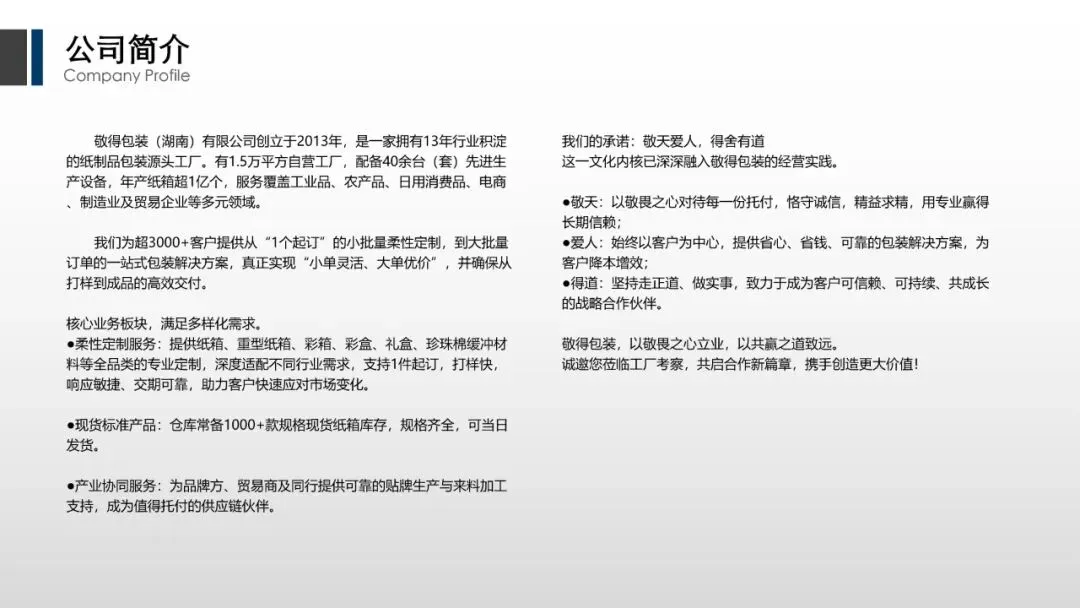 >【公司简介】敬得包装:湖南长沙专注纸箱包装等纸质品定制现货服务的公司