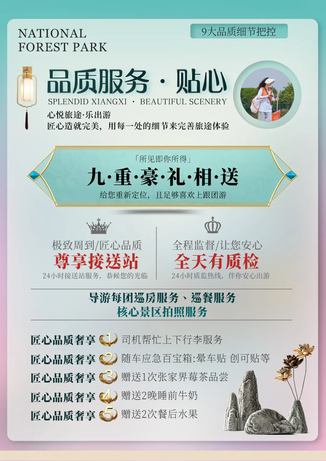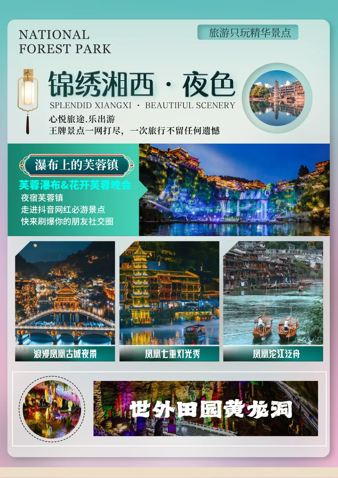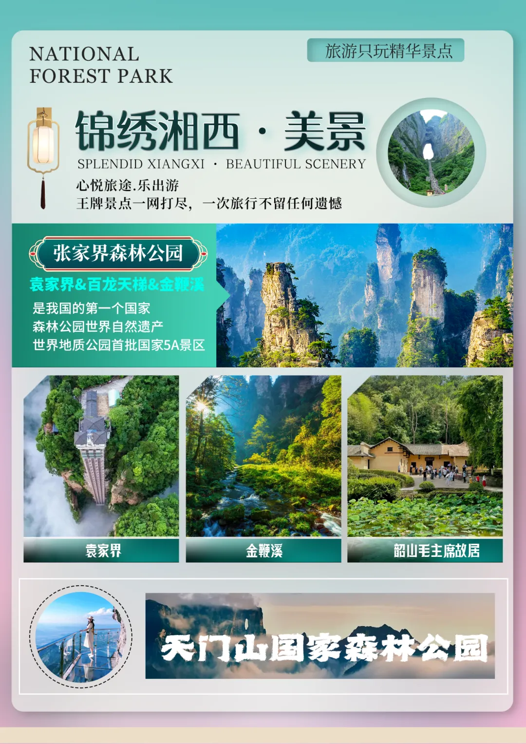 Day3:武陵源景区、张家界国家森林公园→杨家界→袁家界→金鞭溪→黄龙洞 →魅力湘西含餐:早晚餐 住宿:张家界早餐后全程高速前往【武陵源风景名胜区 AAAAA】(核心景区大门票已含),这是我国的第一个国家森林公园,世界自然遗产,世界地质公园,首批国家 AAAAA 景区,游览【杨家界】(赠送杨家界索道单程贵宾通道,减少排队时间),观全球绝版【峰墙长城】,看峰林之绝;环保车抵达【袁家界核心景区】(赠送百龙电梯)《阿凡达》外景拍摄地——哈利路亚山,抵达潘多拉星球--电影《阿凡达》外景拍摄地——【哈利路亚山】探寻影视阿凡达中群山漂浮、星罗棋布的玄幻莫测世界;【天下第一桥】云雾缭绕、峰峦叠嶂、气势磅礴,大小景点应接不暇,忘却归路。