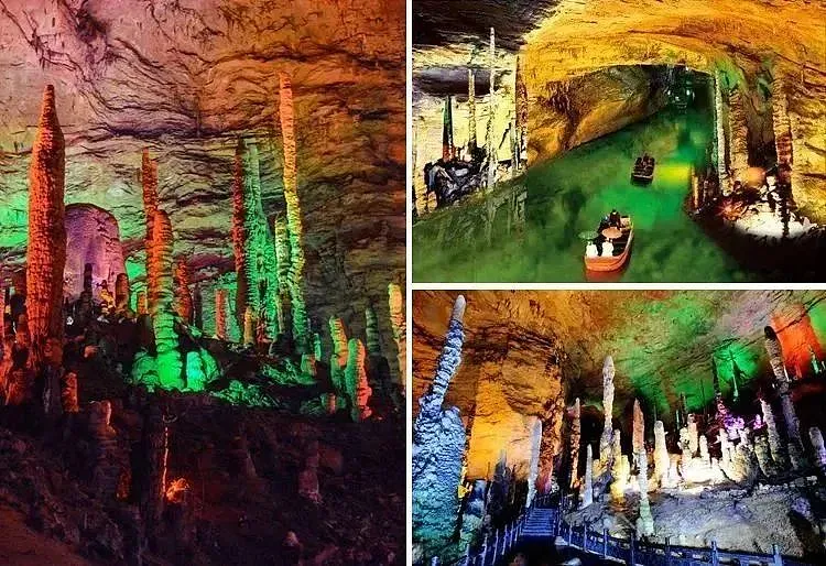 游览享有“世界溶洞全能冠军”之称的国家【黄龙洞 AAAA】沿途欣赏《田园牧歌景区》,山民日出而作日落而息,炊烟袅袅,男耕女织,自在依然,全年四季变换更替,景各千秋,一派世外桃源。探秘洞中,灯火阑珊、石笋林立,犹如一株株古木错节盘根、洞中有洞、洞中有河、无奇不有,真乃名副其实的“地下魔宫”,洞中还有投保一亿元的石笋《定海神针》、《响水河》等著名景点。