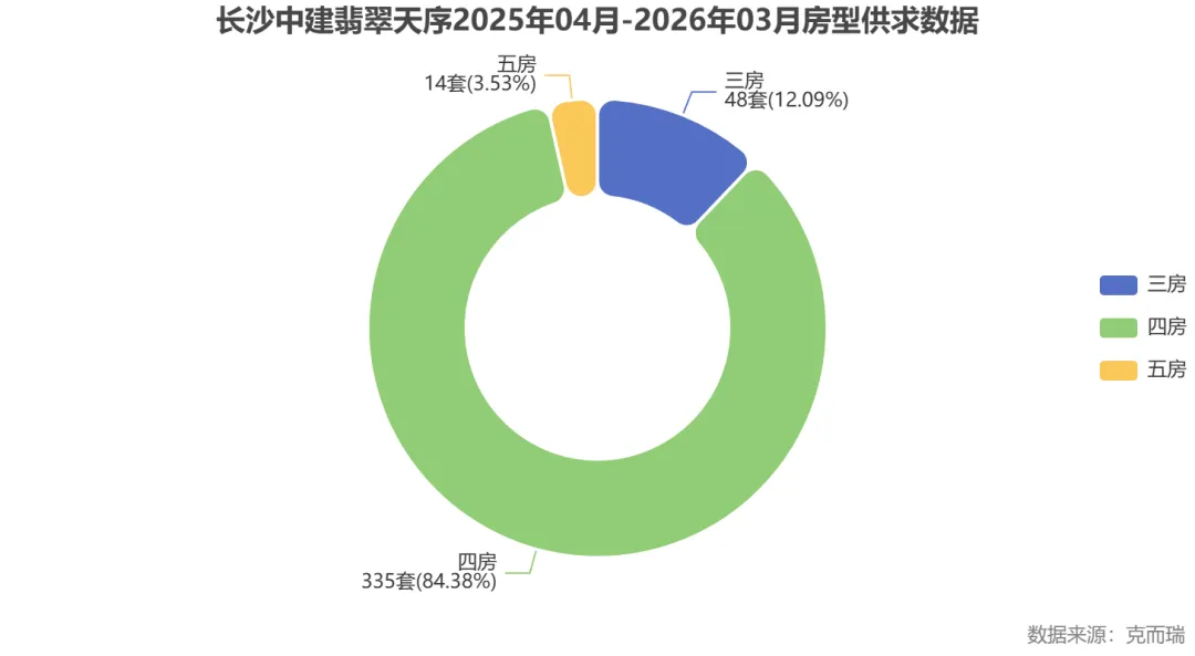 数据显示,在近一年的成交中,四房产品以绝对优势成为市场主流,占比高达84.4%,充分印证了改善型需求对大空间、多功能的强烈偏好。数据来源于克而瑞。