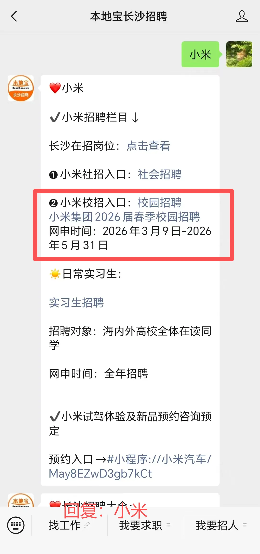 扫描下方二维码关注【本地宝长沙招聘】,关注后对话框回复【小米】可直达小米校招入口查看更多岗位详情等相关信息。
