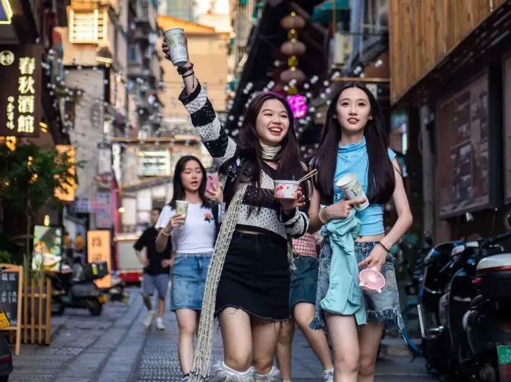 游客在长沙市天心区太平老街游玩。新华社记者 陈思汗 摄