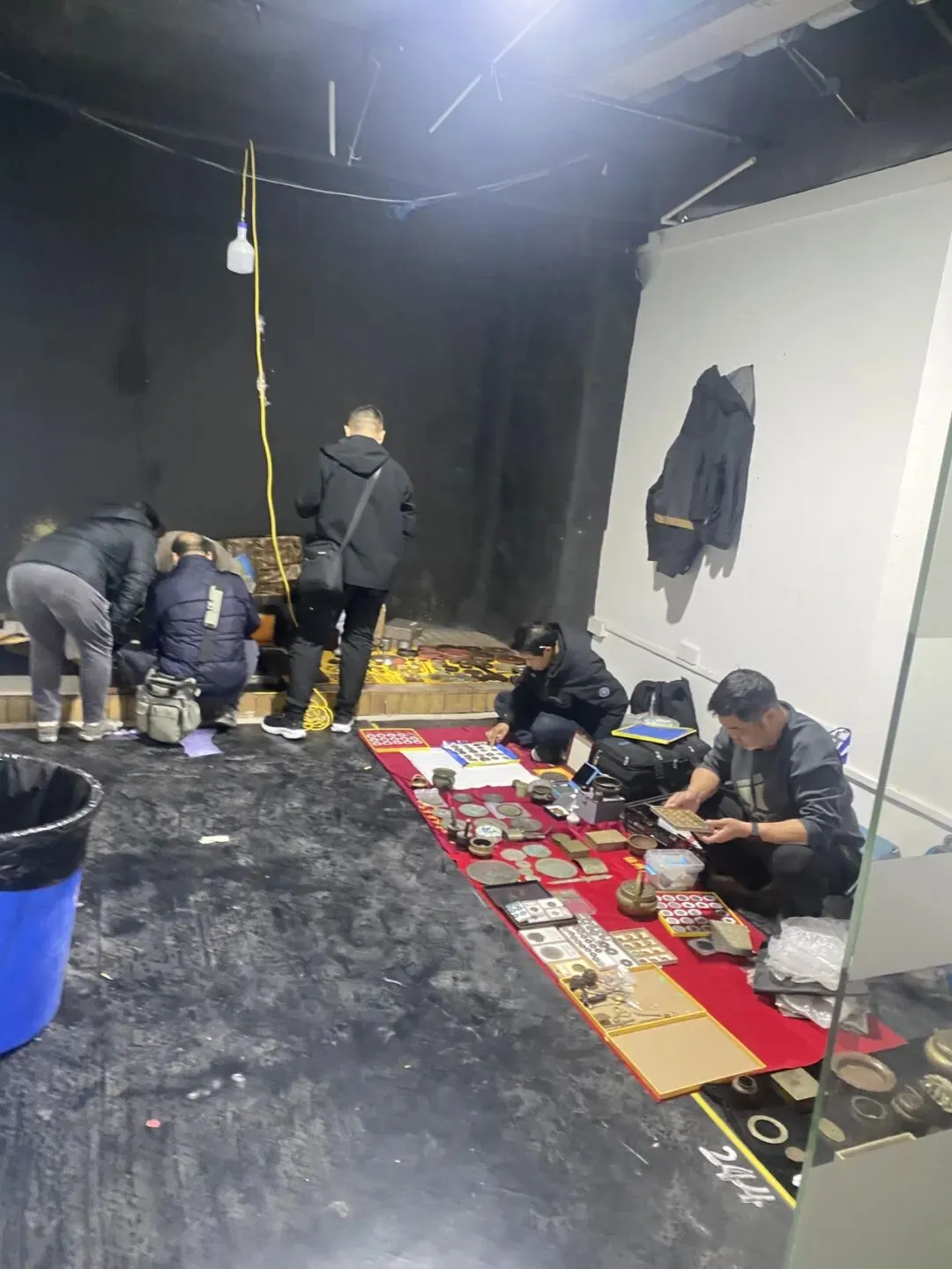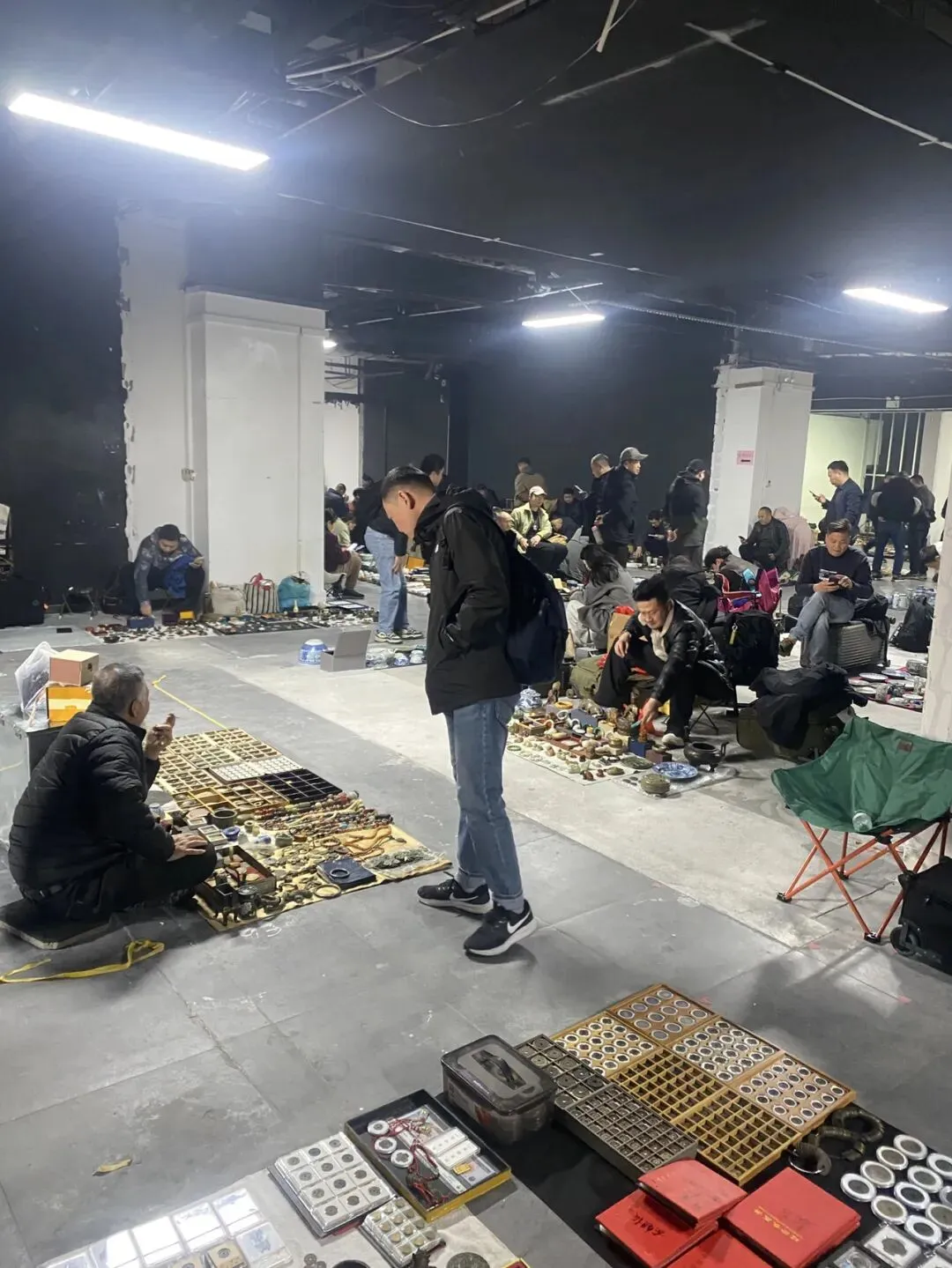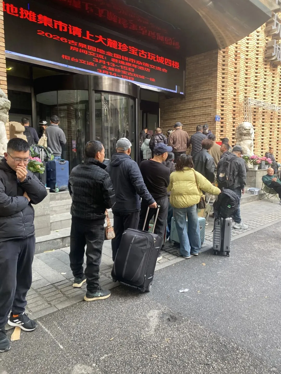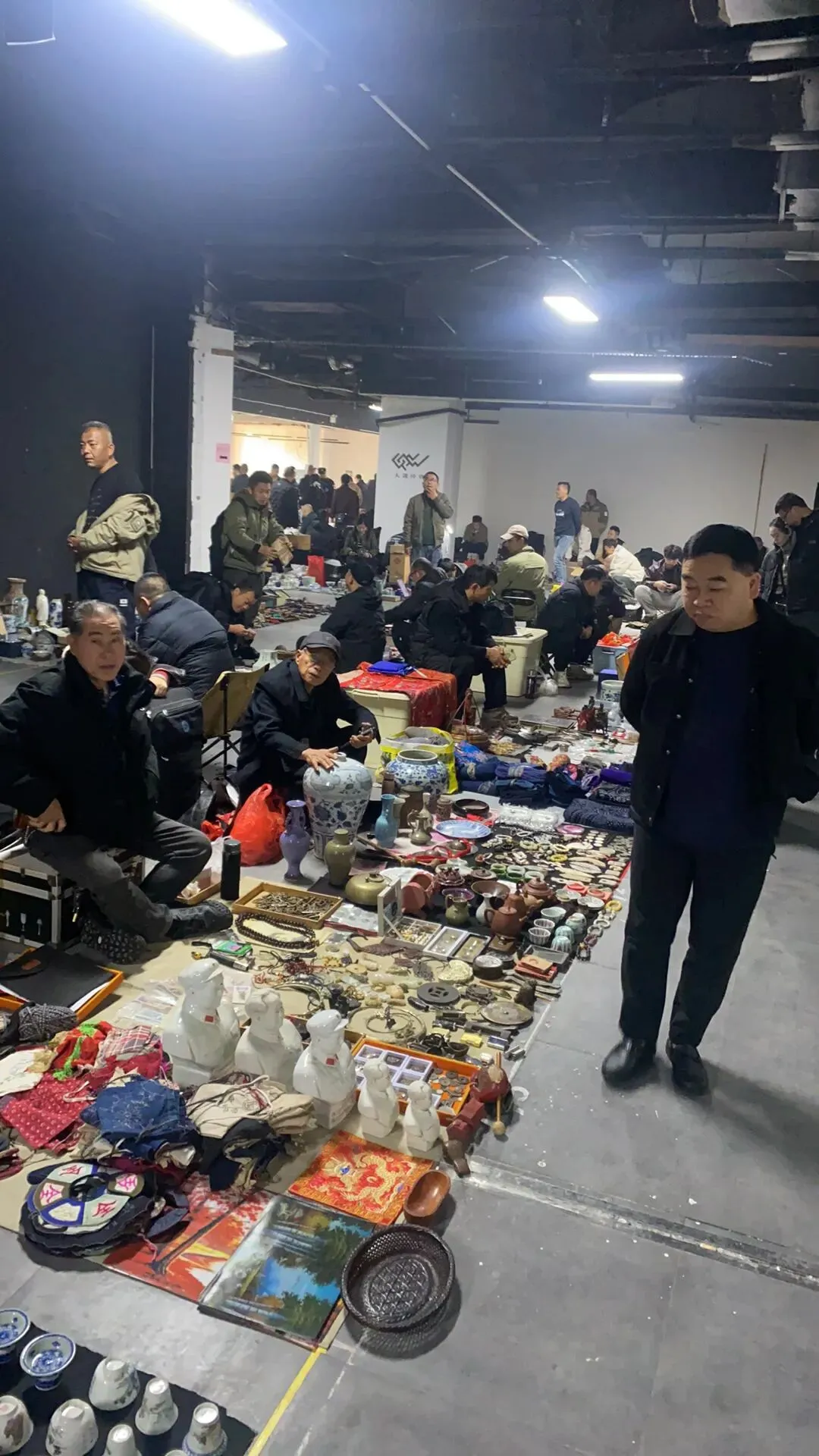 因为今天不让把摆地摊,人们挤在大麓古玩城门口。到古玩市场四楼摆摊。