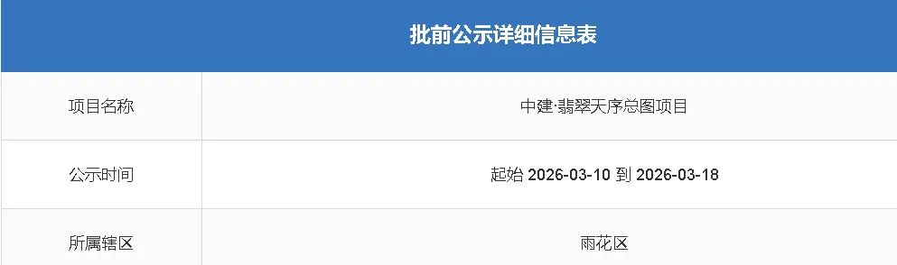 根据批前公示,中建翡翠天序(二期)由中建信和地产有限公司开发打造,共计规划8栋31-33层高层住宅,预计为新规负公摊,规划户数704户,停车位713个,车位配比约1:1。
