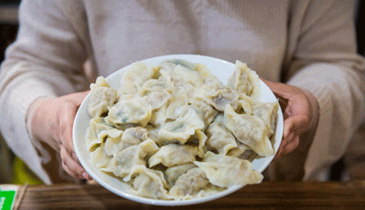 老板一家人是从牡丹江过来的。他们主要是做夜宵生意,不过白天过去也能吃上。平时一家人就在店里忙着包饺子,动作特别快。