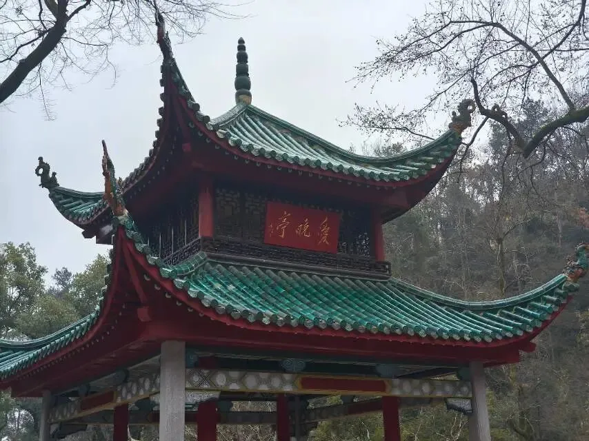 次日一早登岳麓山,为了俯瞰橘子洲没听劝没有选择从湖南大学那头进山。可惜的是早上雾蒙蒙的,站在观日台上一切都影影绰绰,不过倒也别有一番味道一路向前,见一座亭子,亭顶重檐四披,攒尖宝顶,四翼角边远伸高翘,覆以绿色琉璃筒瓦,原来这就是爱晚亭。爱晚亭为清代岳麓书院山长罗典创建,原名红叶亭,后由湖广总督毕沅,据“停车坐爱枫林晚,霜叶红于二月花”的诗句,更名爱晚亭。现在看到的爱晚亭仨字是由毛爷爷题写的。