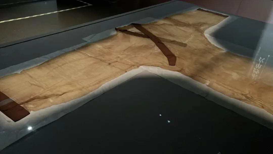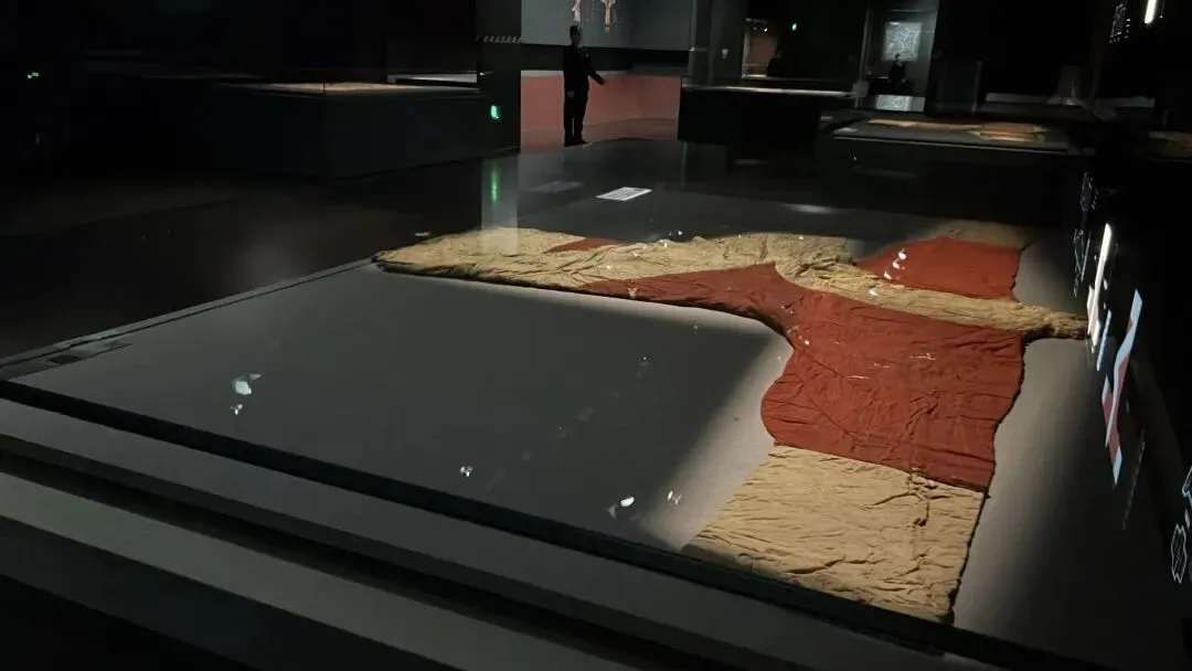素纱单衣,直裾49克,曲裾48克,薄如蝉翼,代表了汉初鼎级的缫丝与丝织工艺。直、曲两款单衣古朴简洁,幽静柔软的陈列于展柜之中,四周萦绕着神秘而高贵的气息。有一款风韵清雅的朱红色菱形纹罗丝绵袍,交领、右衽、曲裾式长袍,以菱形纹罗为主料,素娟为里、缘、内絮丝绵,是汉初贵族妇女中的爆款。