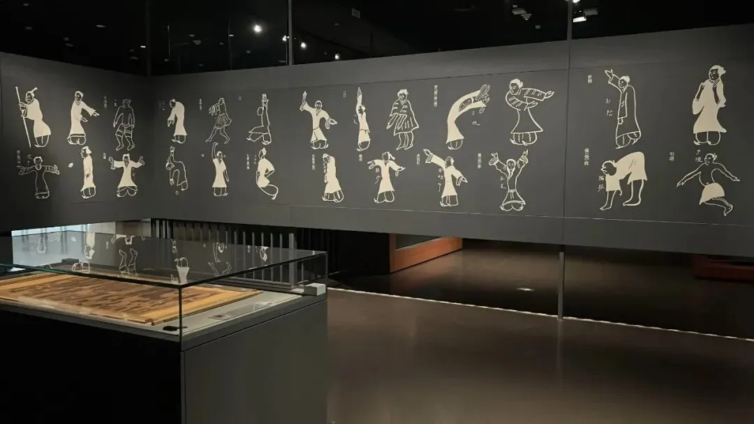 《导引图》,现存最早彩绘气功导引操练图。男女老少44人养生操姿态各异,有延寿健身且治病功效。