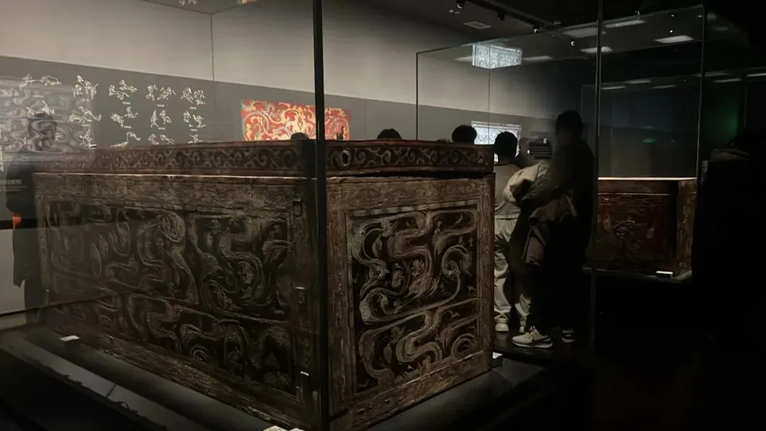 朱地彩绘棺,井椁内四层套棺,漆艺与绘画水平极高,显现出汉代超前审美观与艺术修养,是迄今保存最大、最完整的汉代井椁实物。