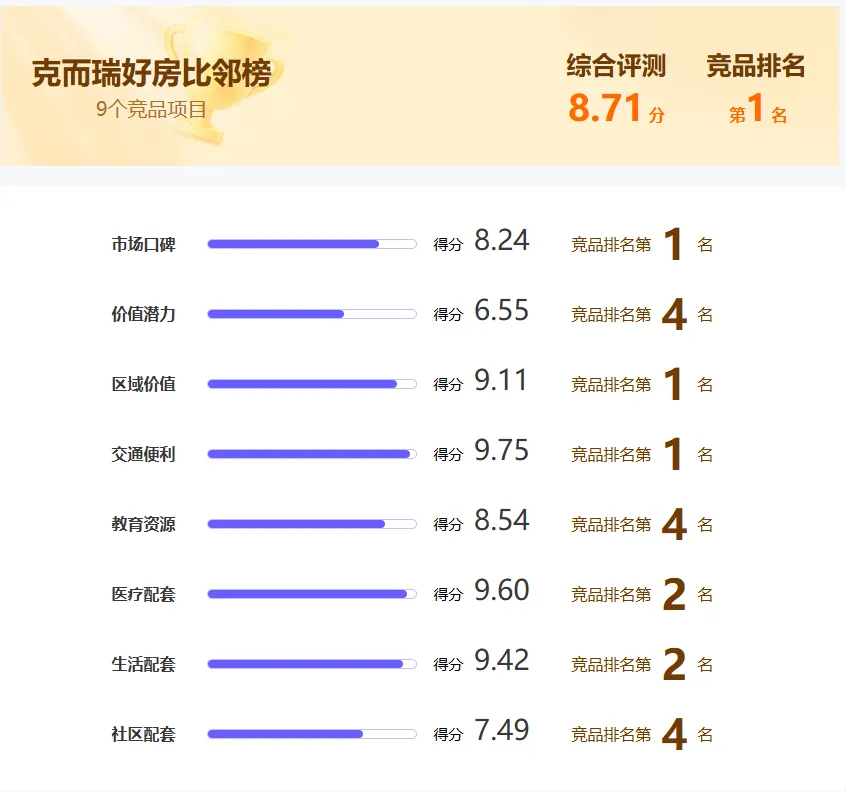 项目凭借市场口碑、区域价值、交通便利等维度的优异表现,显著提升了整体价值。