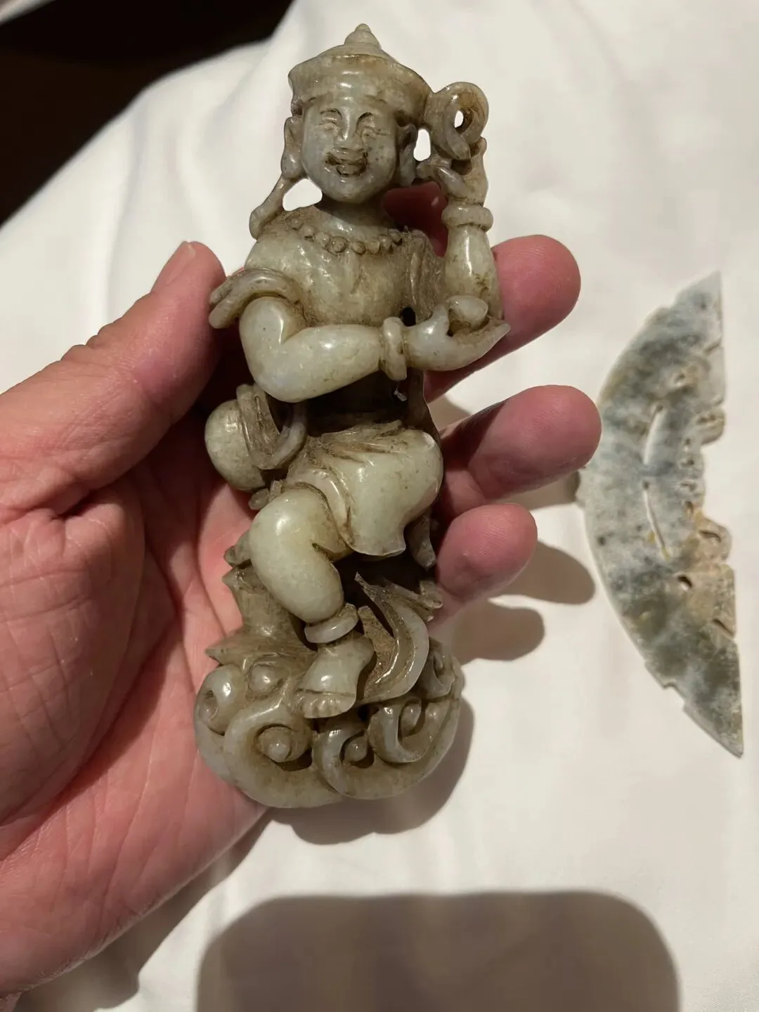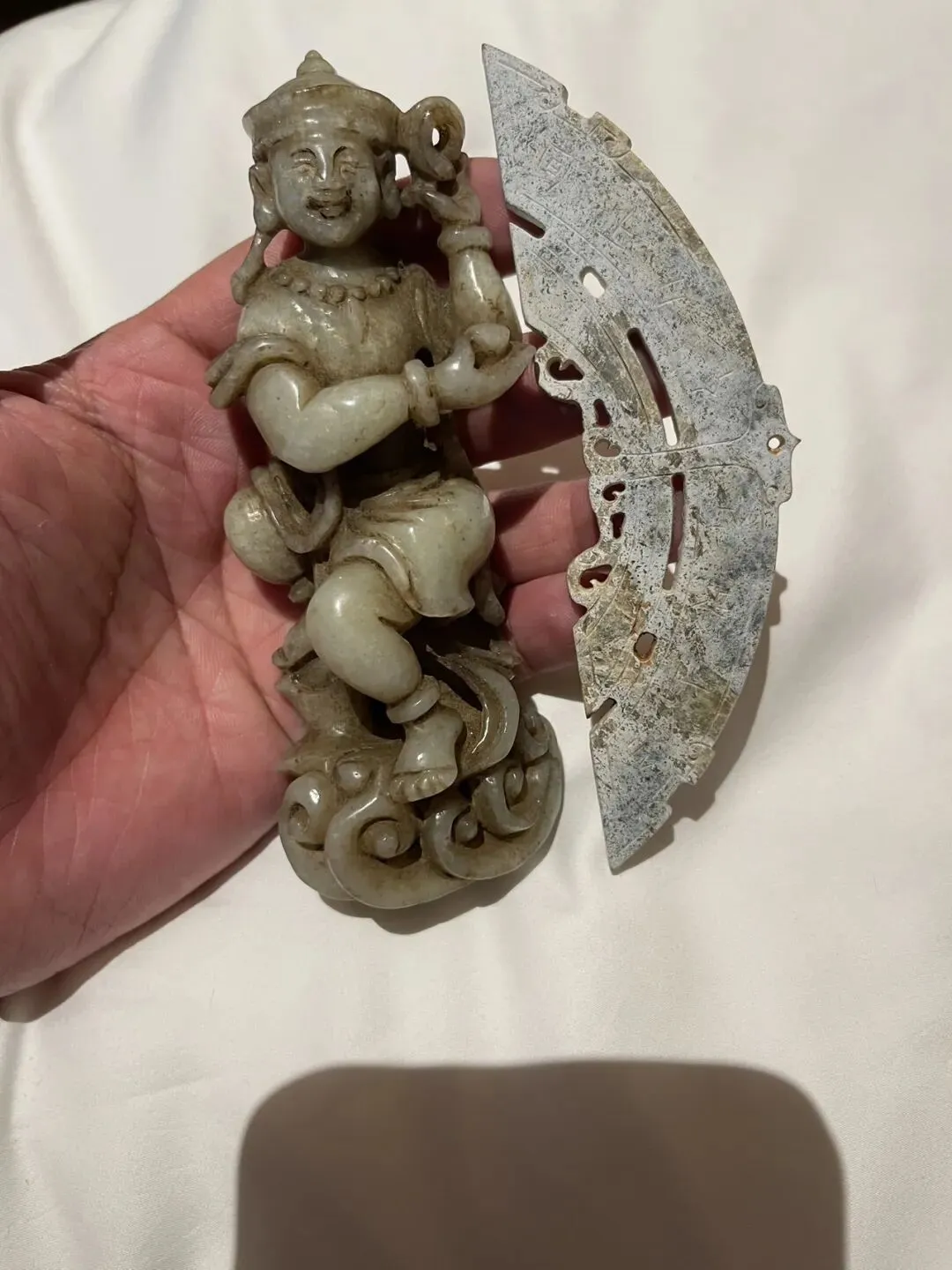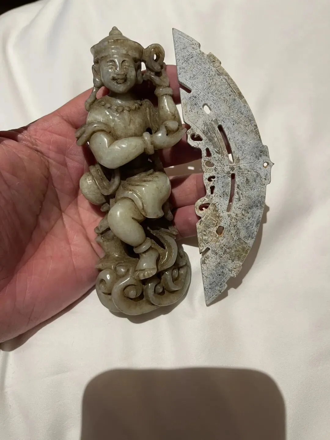 收到两件古玉,时隔千秋文化,一件明元时期的喜哈财神,一件高古时期的玉璜。
