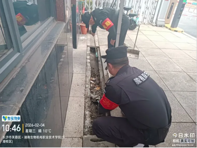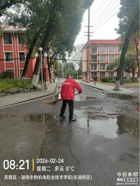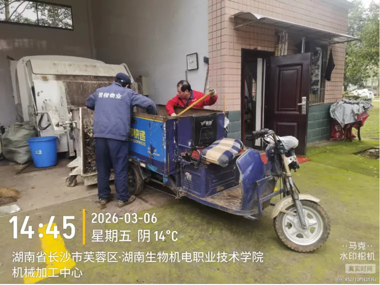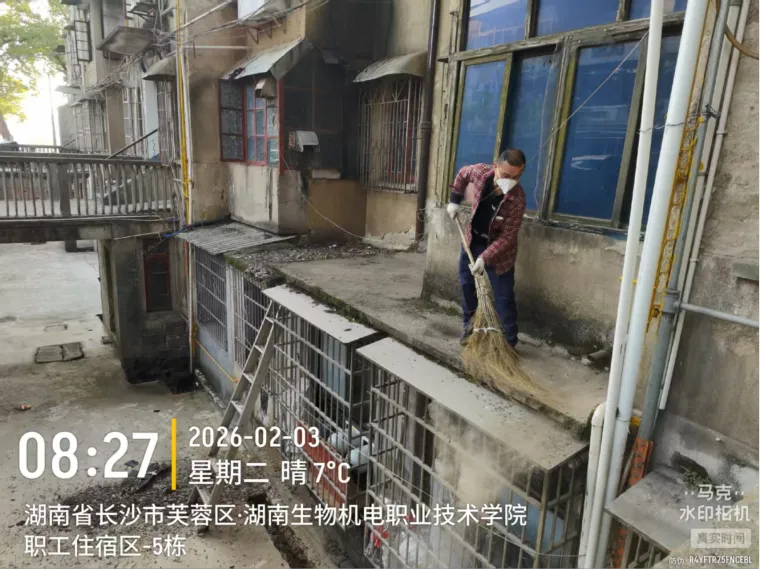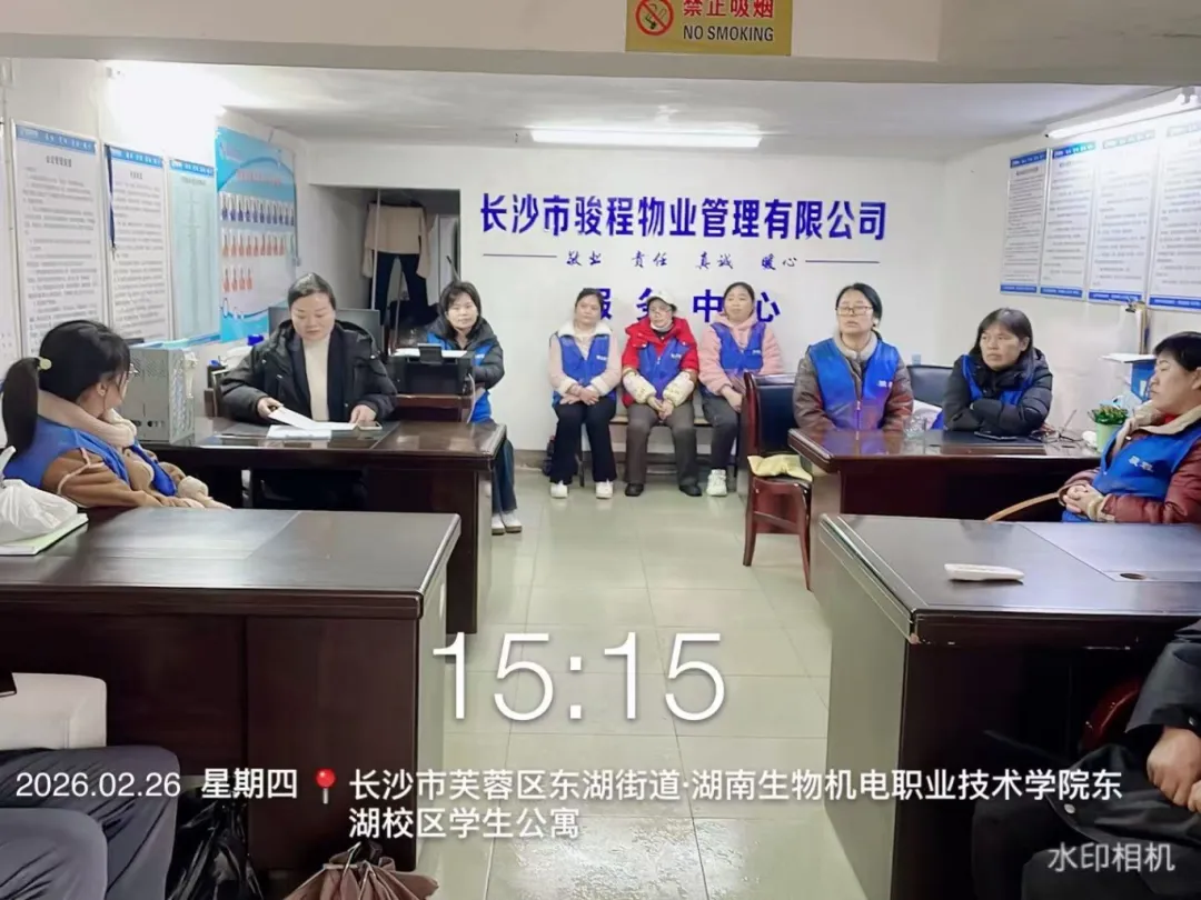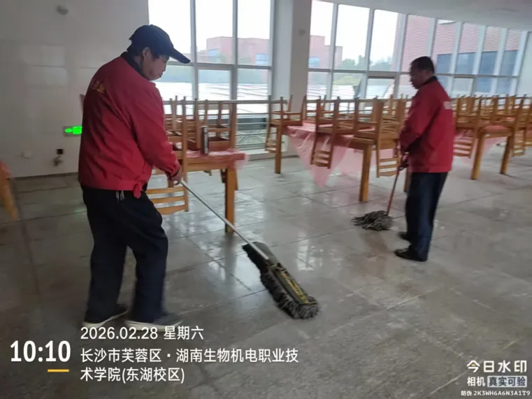 报修4单;垃圾清运8次;校园大扫除、沟渠清理、垃圾桶深度清理;值班巡查6次;员工培训及会议4次;留校学生查寝。