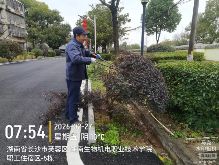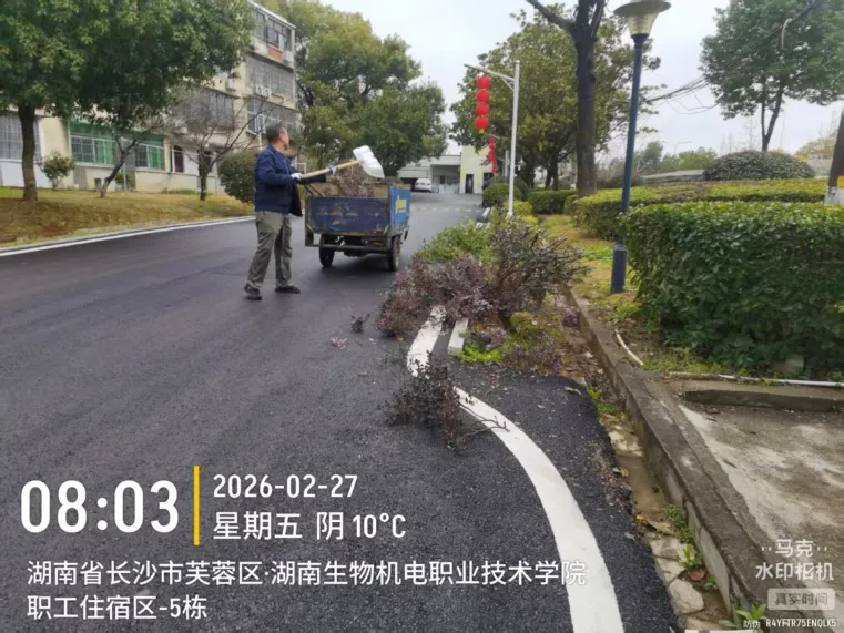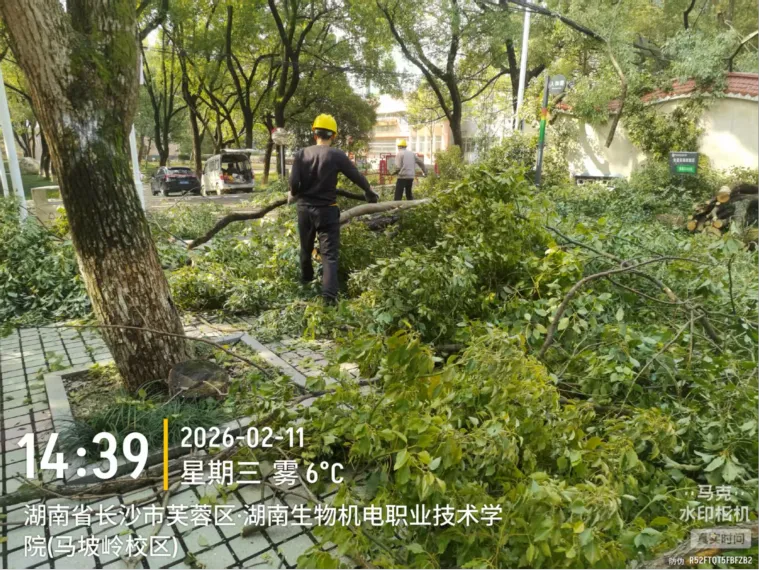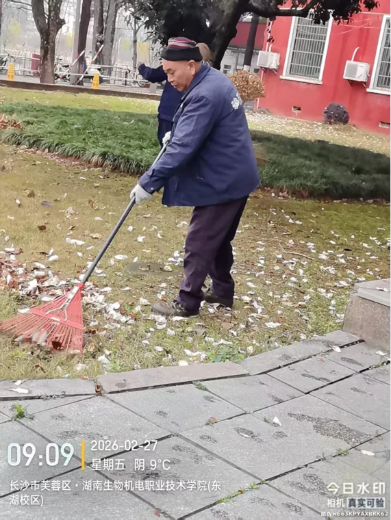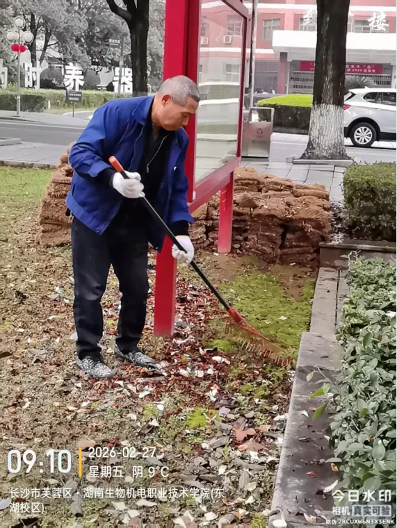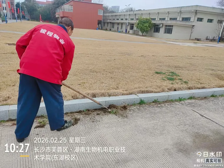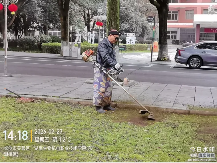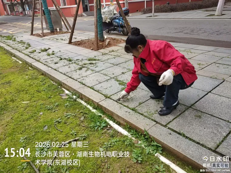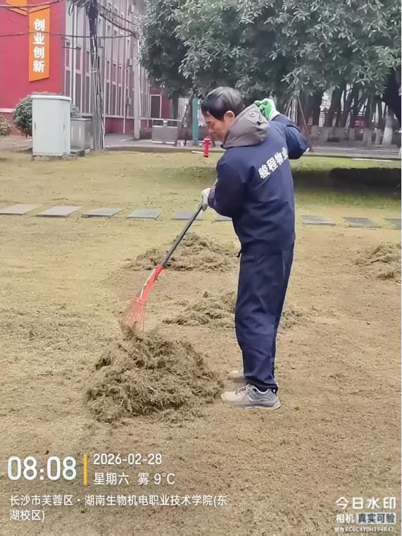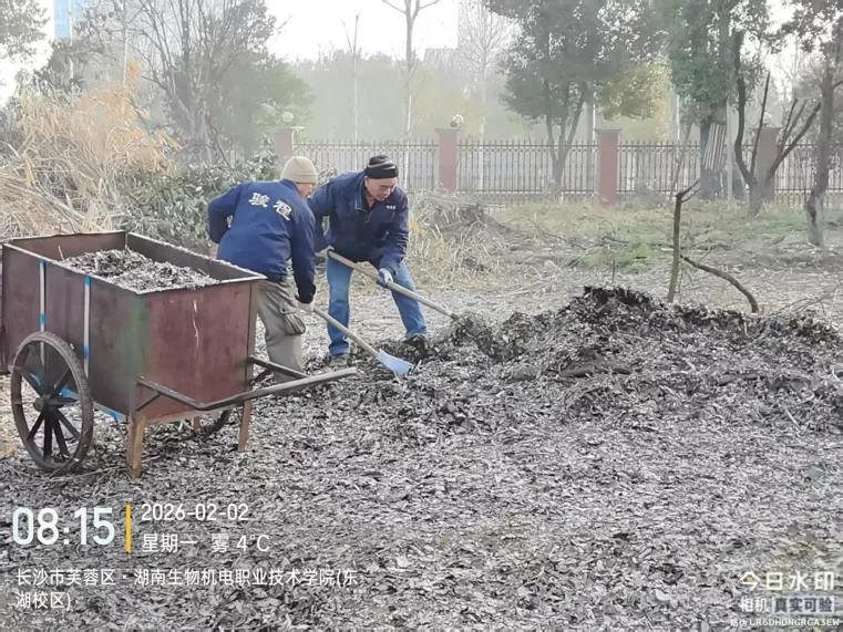 清理低空危枝2次,校区补栽补种1次;绿化重点区域落叶清扫2次;草坪修剪;清理草坪内杂草、杂物及白色垃圾。