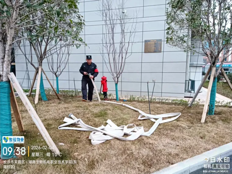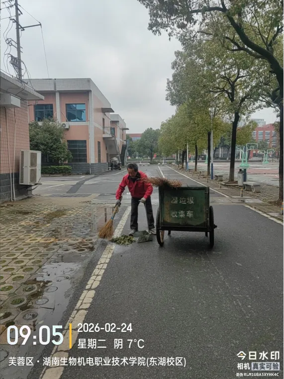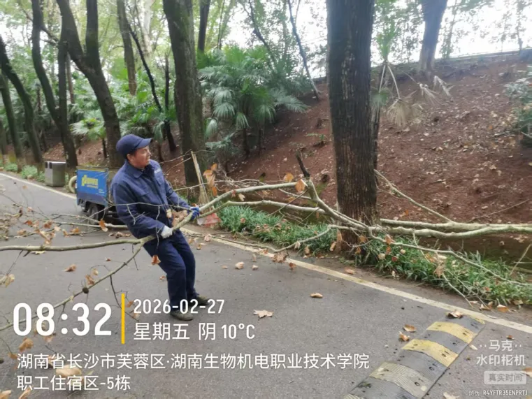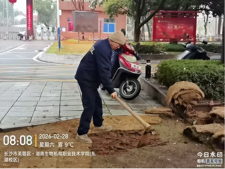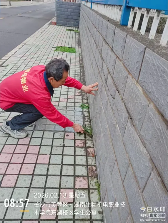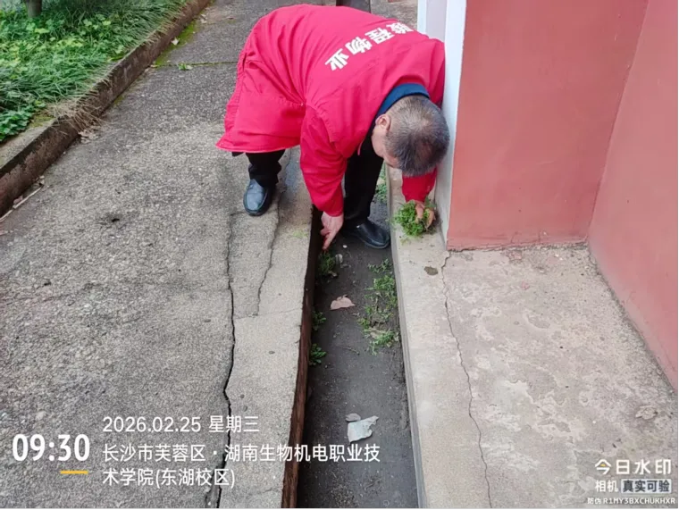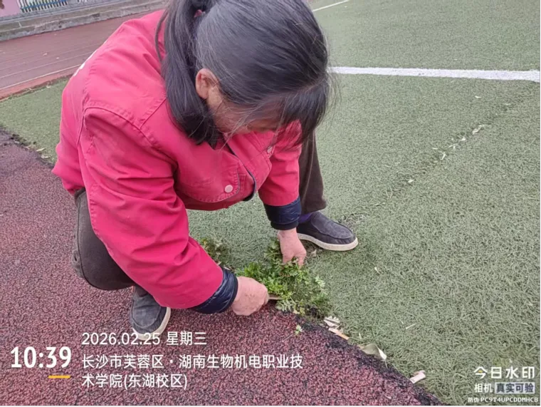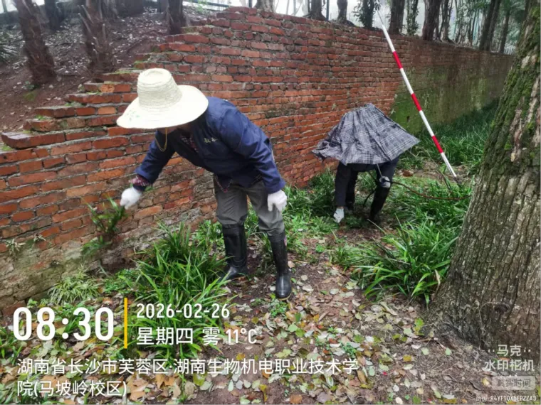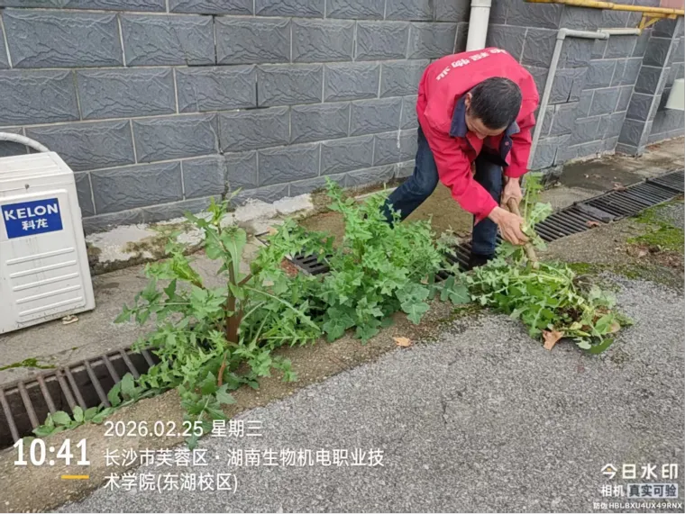 清理低空危枝2次,校区补栽补种1次;绿化重点区域落叶清扫2次;草坪修剪;清理草坪内杂草、杂物及白色垃圾。