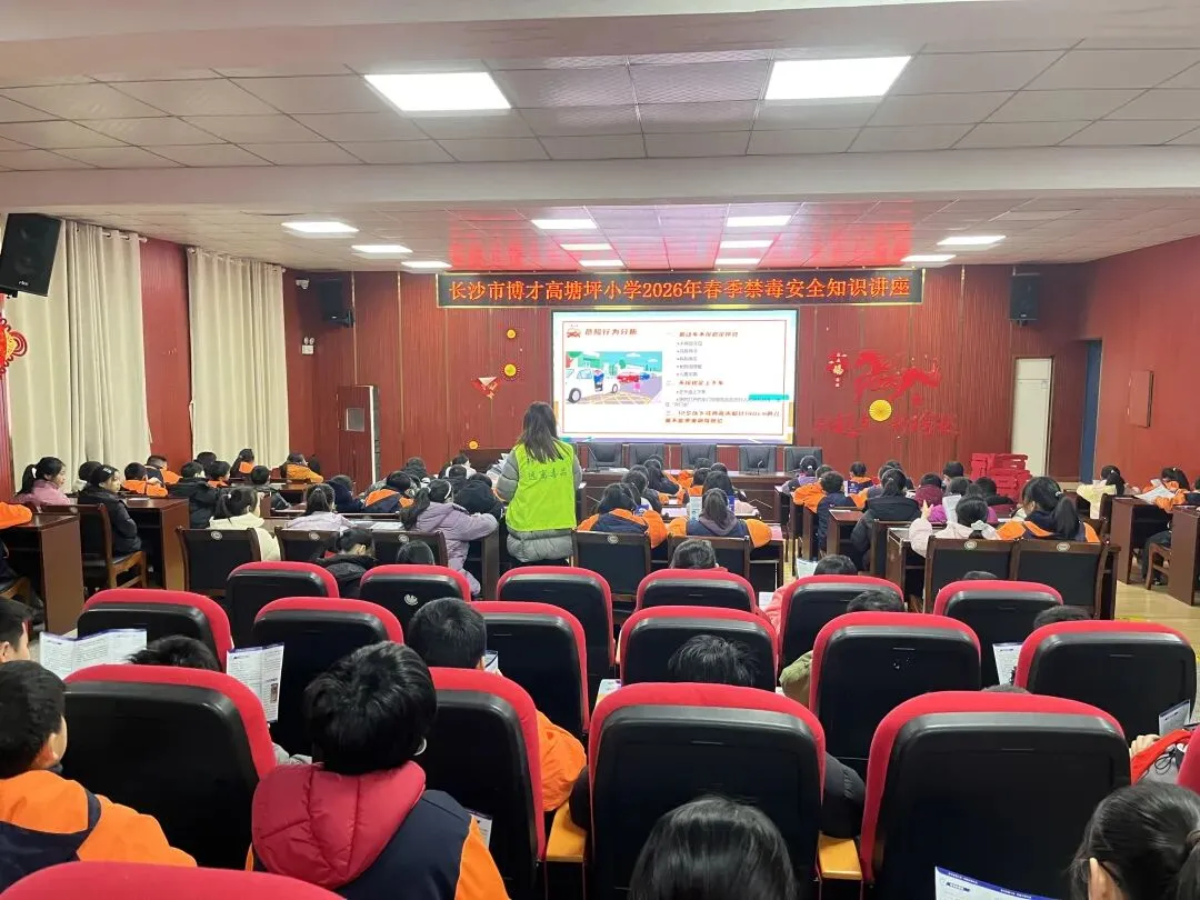 新春开学季,禁毒护成长。为全面加强青少年毒品预防教育,提升师生识毒、防毒、拒毒意识与能力,长沙县黄兴镇、北山镇、江背镇、泉塘街道相继开展2026年春季“开学第一课”禁毒宣传进校园活动,以部门联动、警校共建、精准宣讲、多元互动,为新学期校园安全筑牢坚实防线。