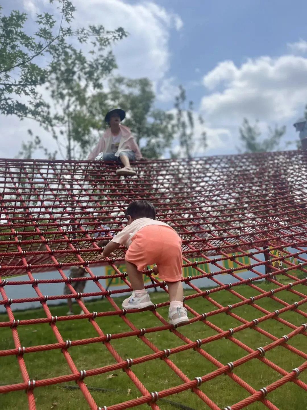 里面有一座不高的小山,小宝宝也能轻松爬一爬,轻度体验登高。
