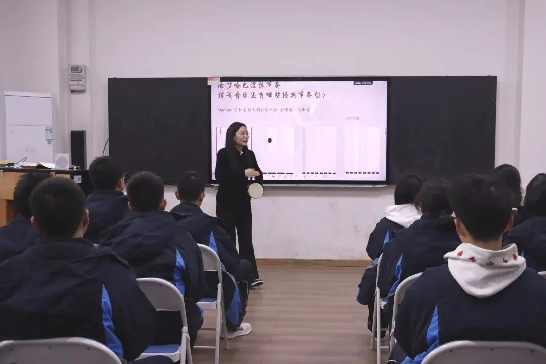 拾级而上,音乐学科的展示课正在进行,长沙麓山国际昌济中学青年教师刘微微正带领2506班的同学,开启一场《美洲民族民间音乐——探戈音乐》的发现之旅。