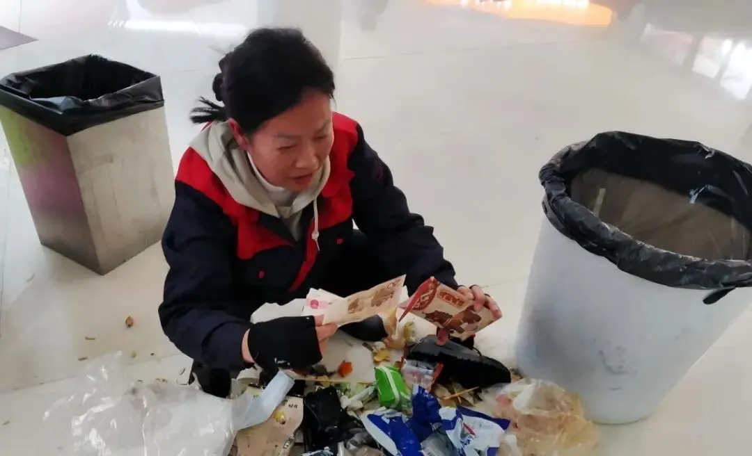 线索就是命令!监控员迅速将信息同步给保洁监管。一场与时间赛跑的爱心接力瞬间展开:保洁监管即刻联动保洁领班及就近的现场保洁人员,火速赶往指定区域展开搜寻。根据线索,大家将目标锁定在附近的垃圾桶。为了尽快找回失物,保洁人员毫不犹豫地俯下身,在垃圾桶内认真细致地翻找。仅仅十分钟后,那个承载着顾客焦急与期盼的红包被成功找回,并第一时间完好无损地归还到了失主手中。从接到求助到物归原主,全程仅用十分钟。这“十分钟”的背后,是监控员的“火眼金睛”,是各岗位间的高效联动,更是保洁人员不辞辛苦、认真负责的职业操守。